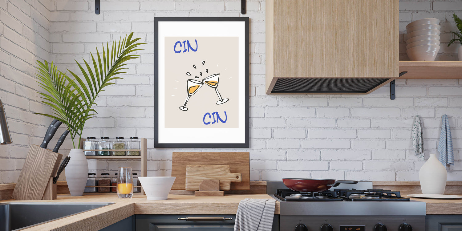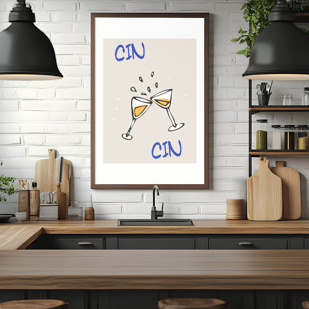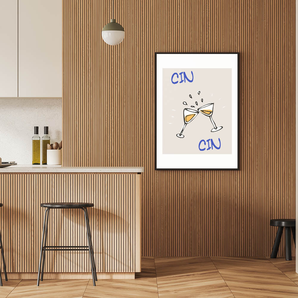 Cin Cin Toasting Glasses - Drinks Wall Art for Bar Decor