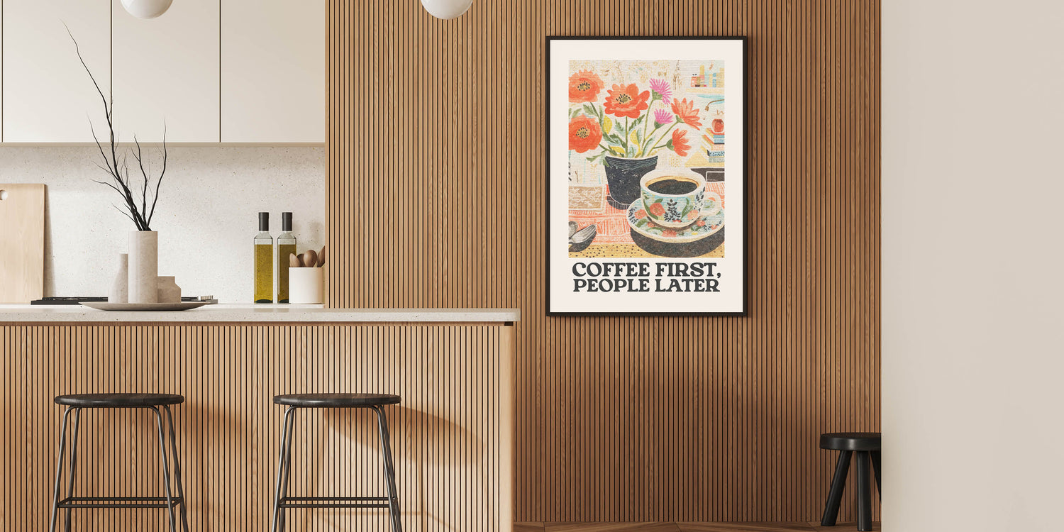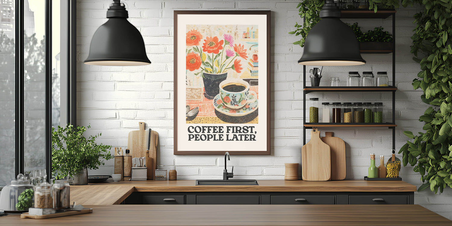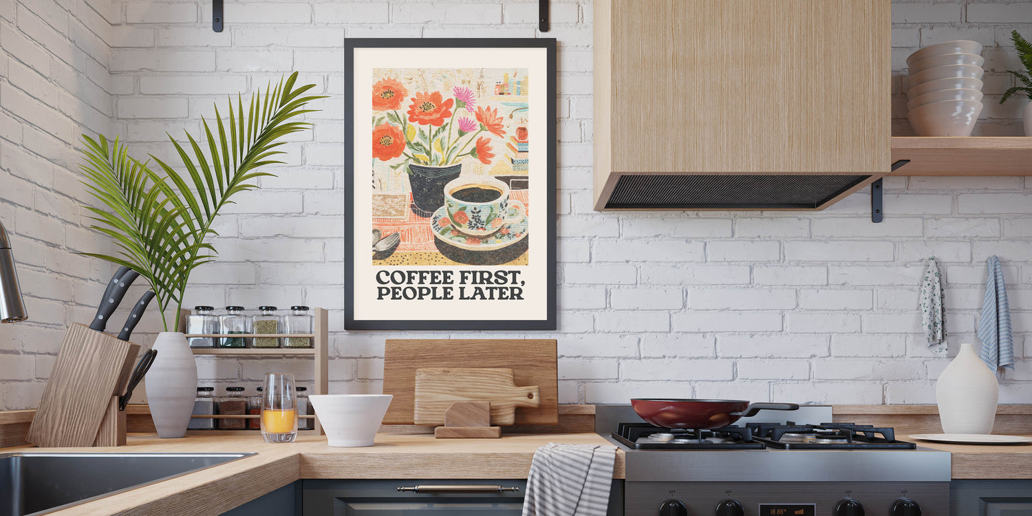 Coffee First, People Later – Floral Coffee Wall Art for Kitchen & Café