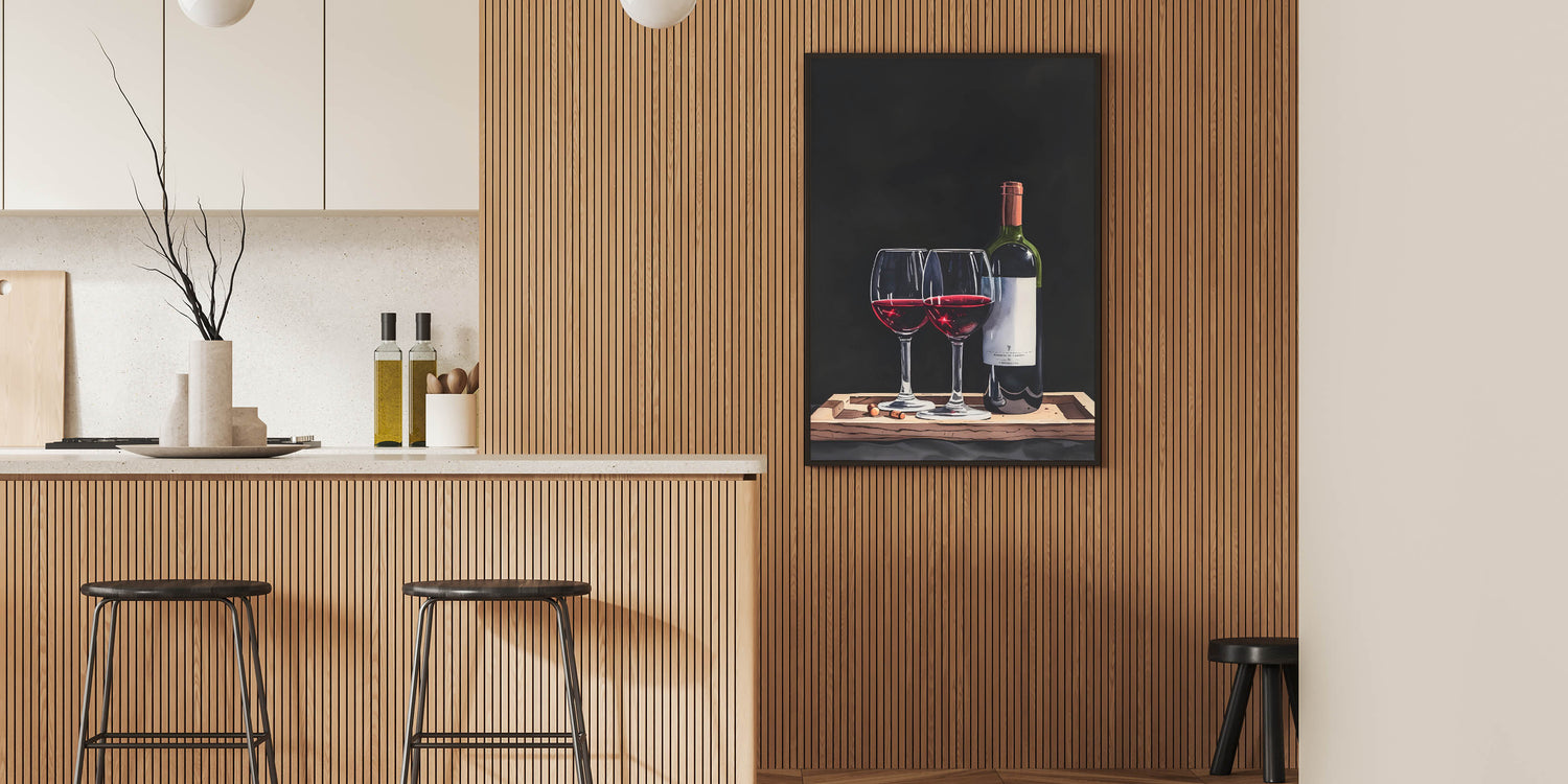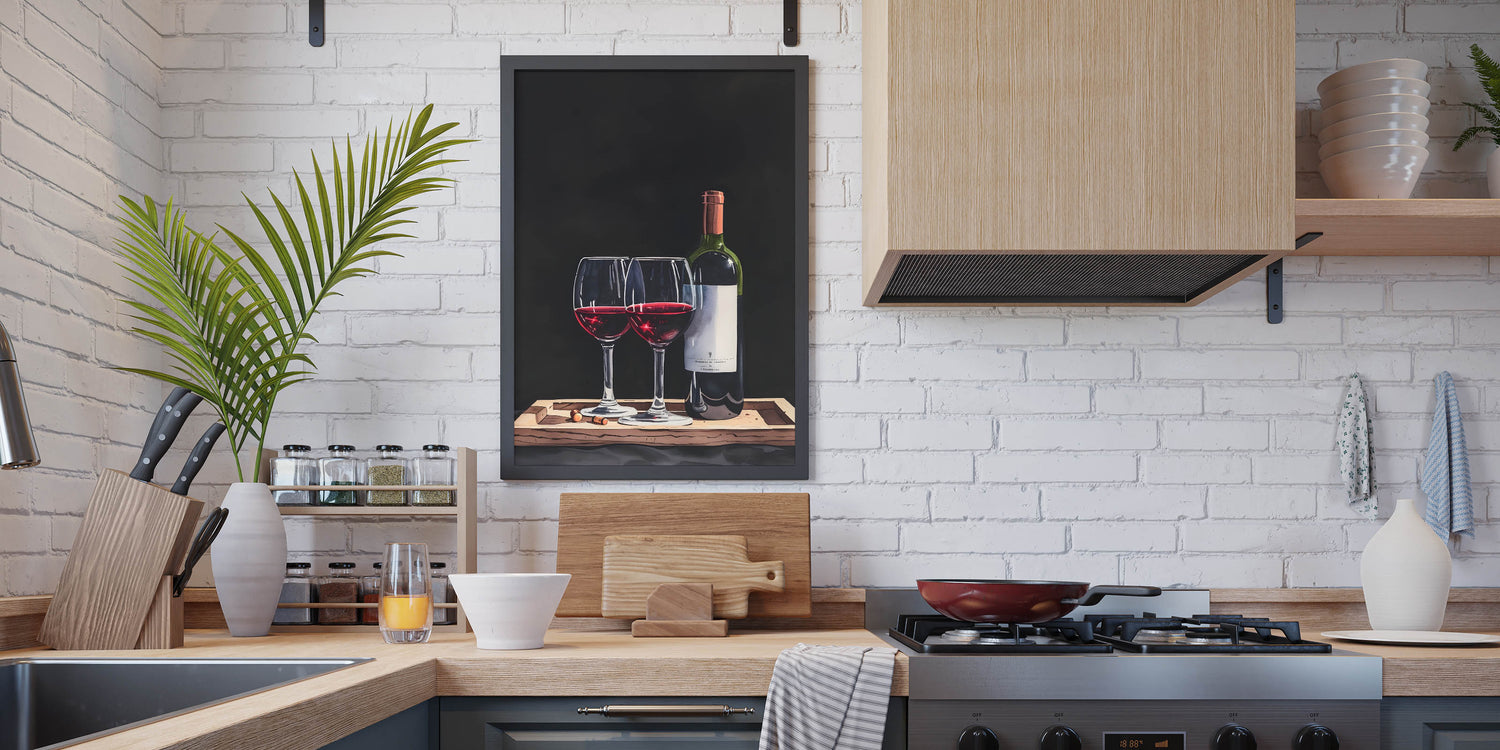 Elegant Red Wine Wall Art - Wine Art Decor for Bar and Kitchen