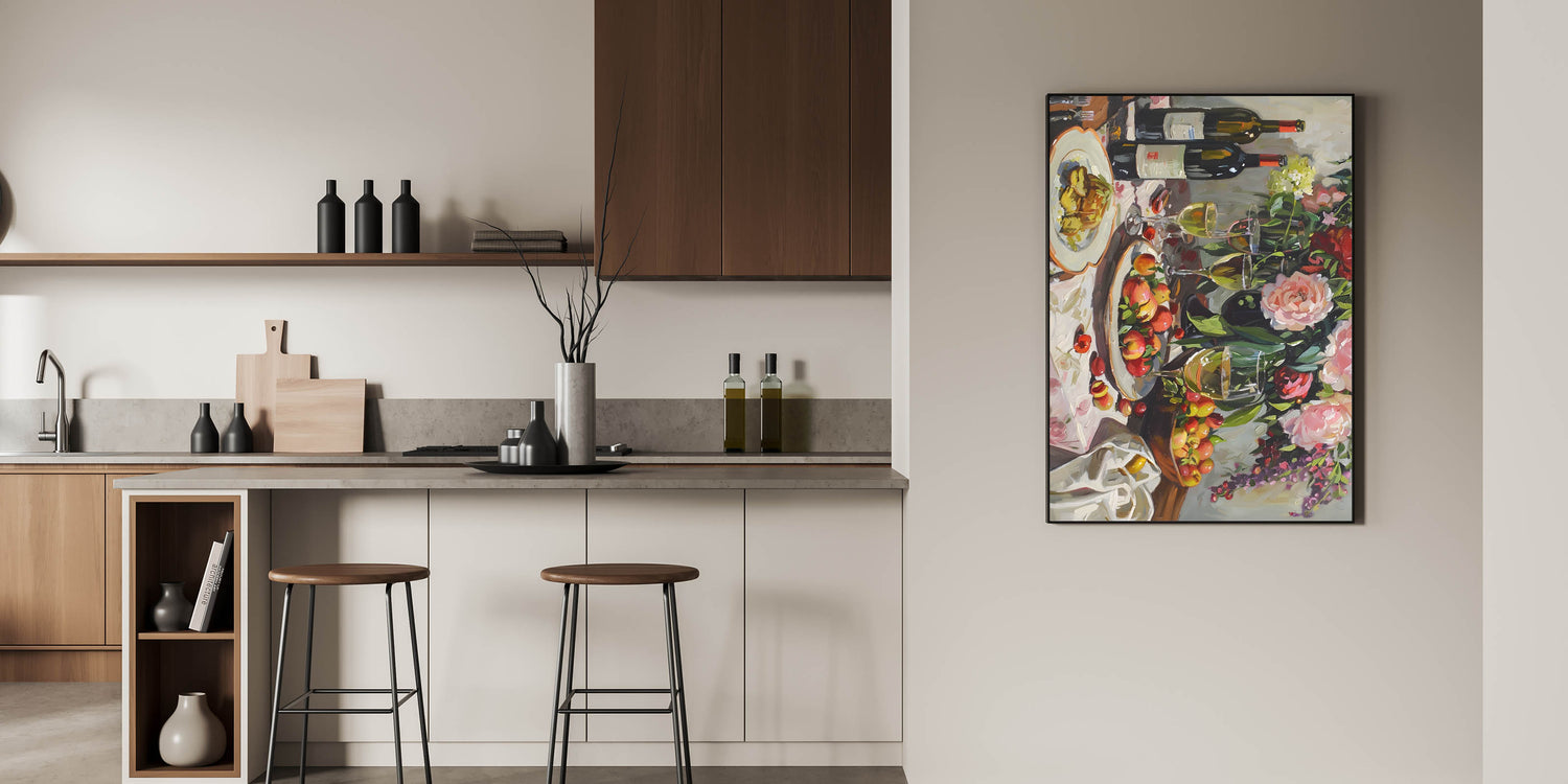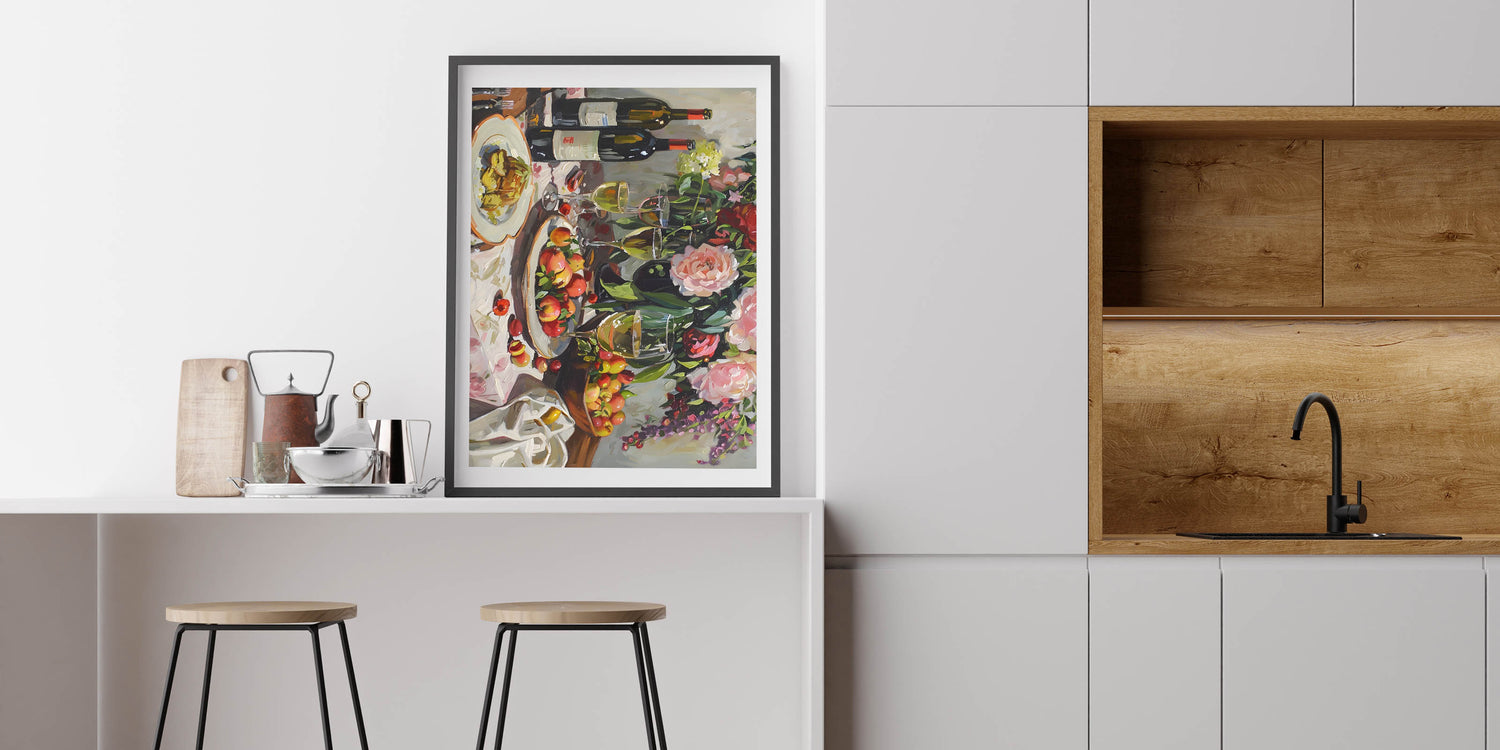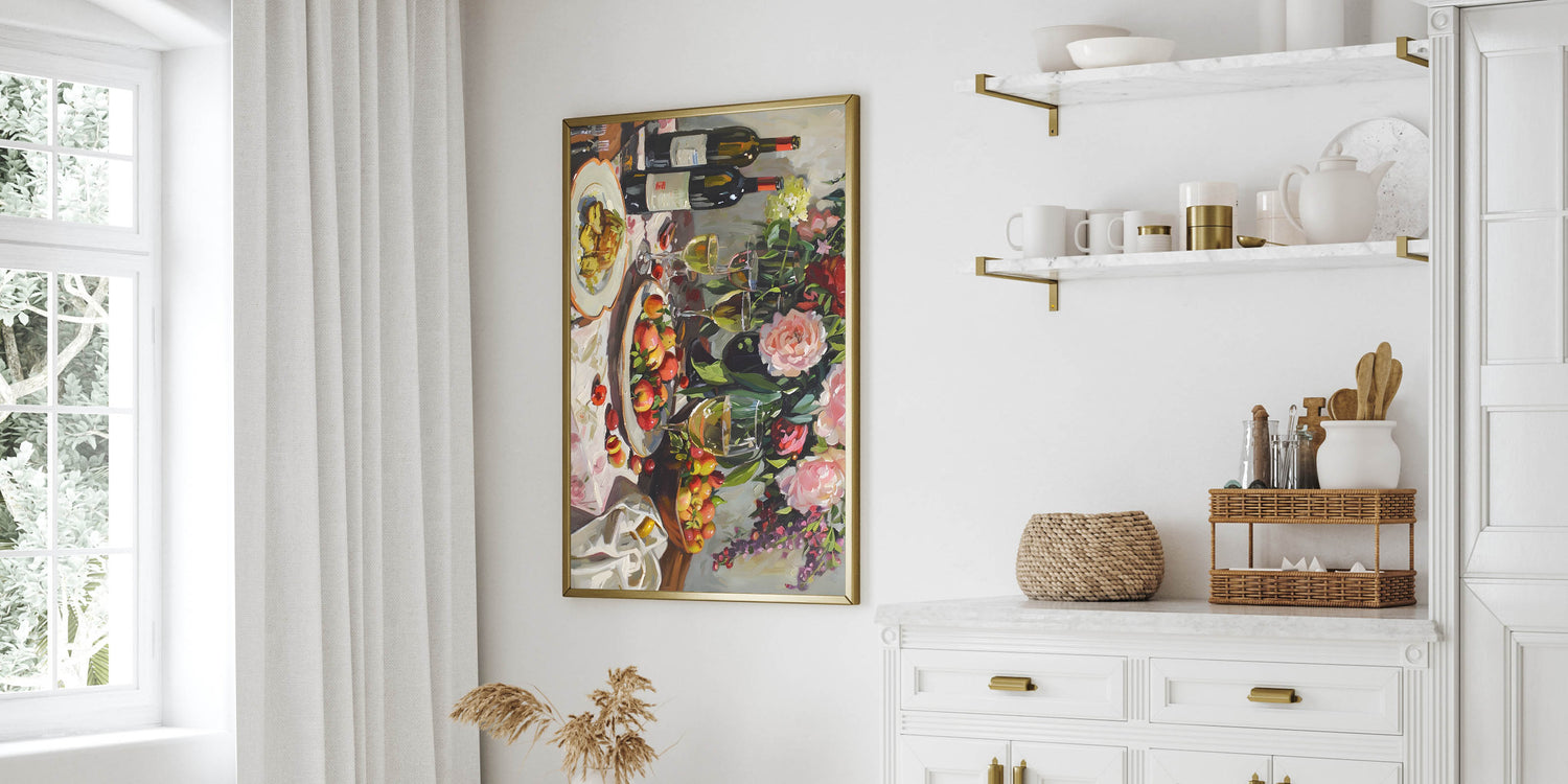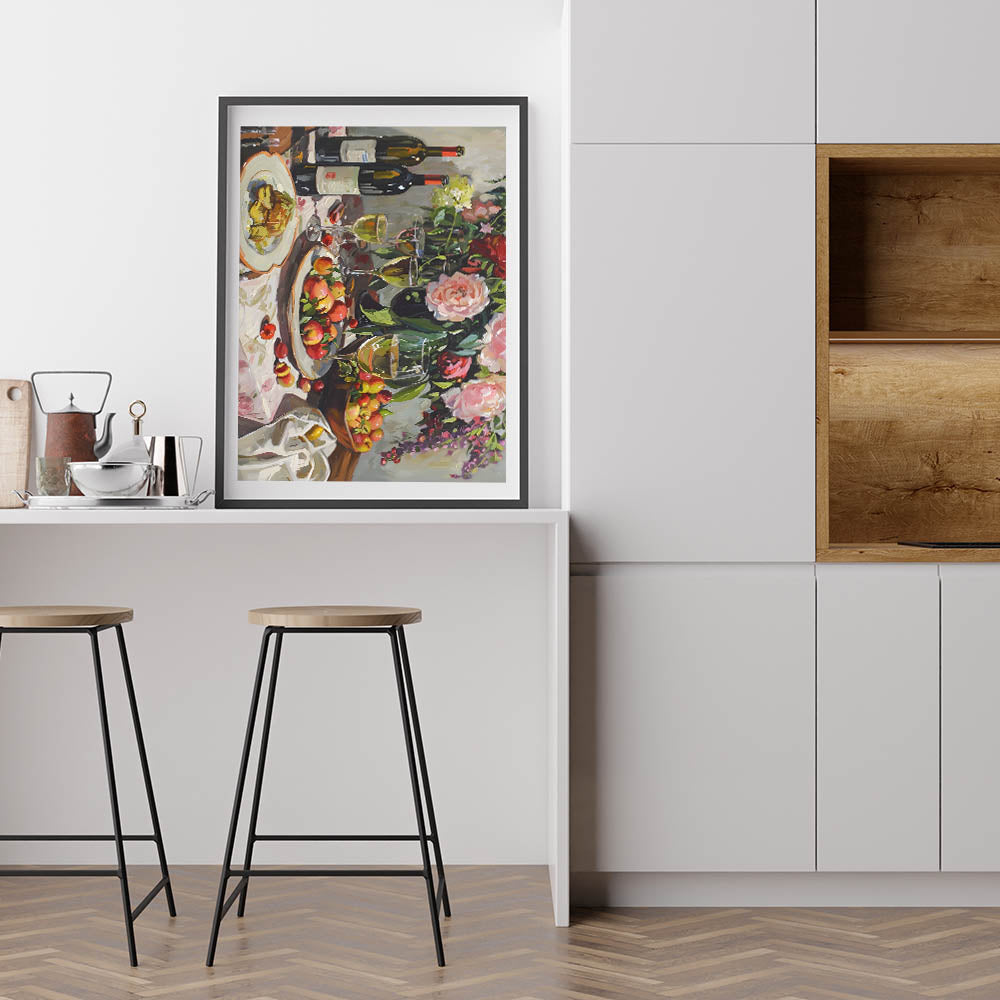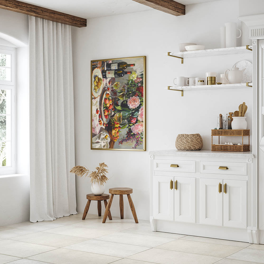 Elegant Wine and Floral Feast Wall Art - Beverage Art Decor