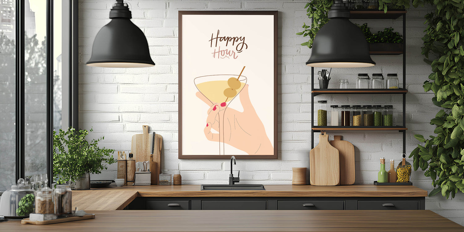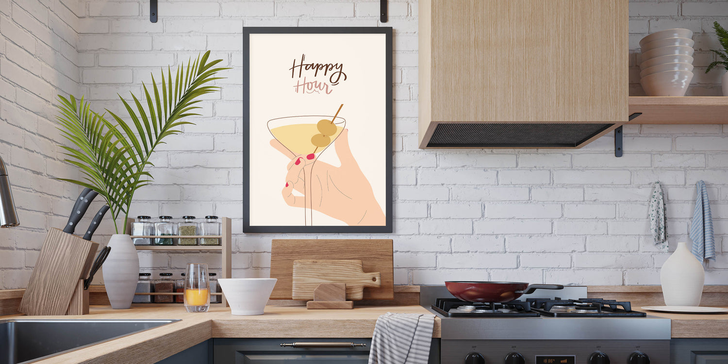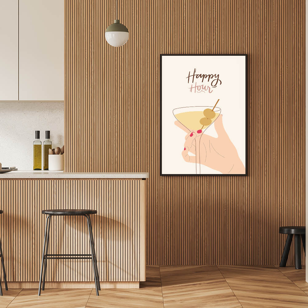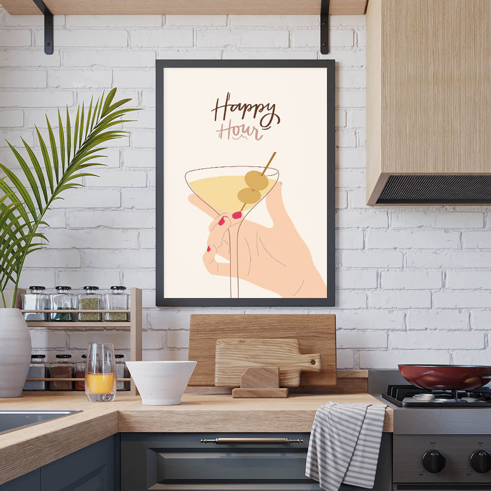 Happy Hour Martini - Cocktail Wall Art for Bar & Kitchen Decor