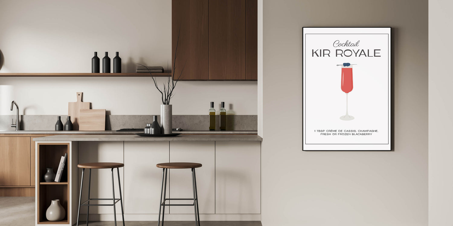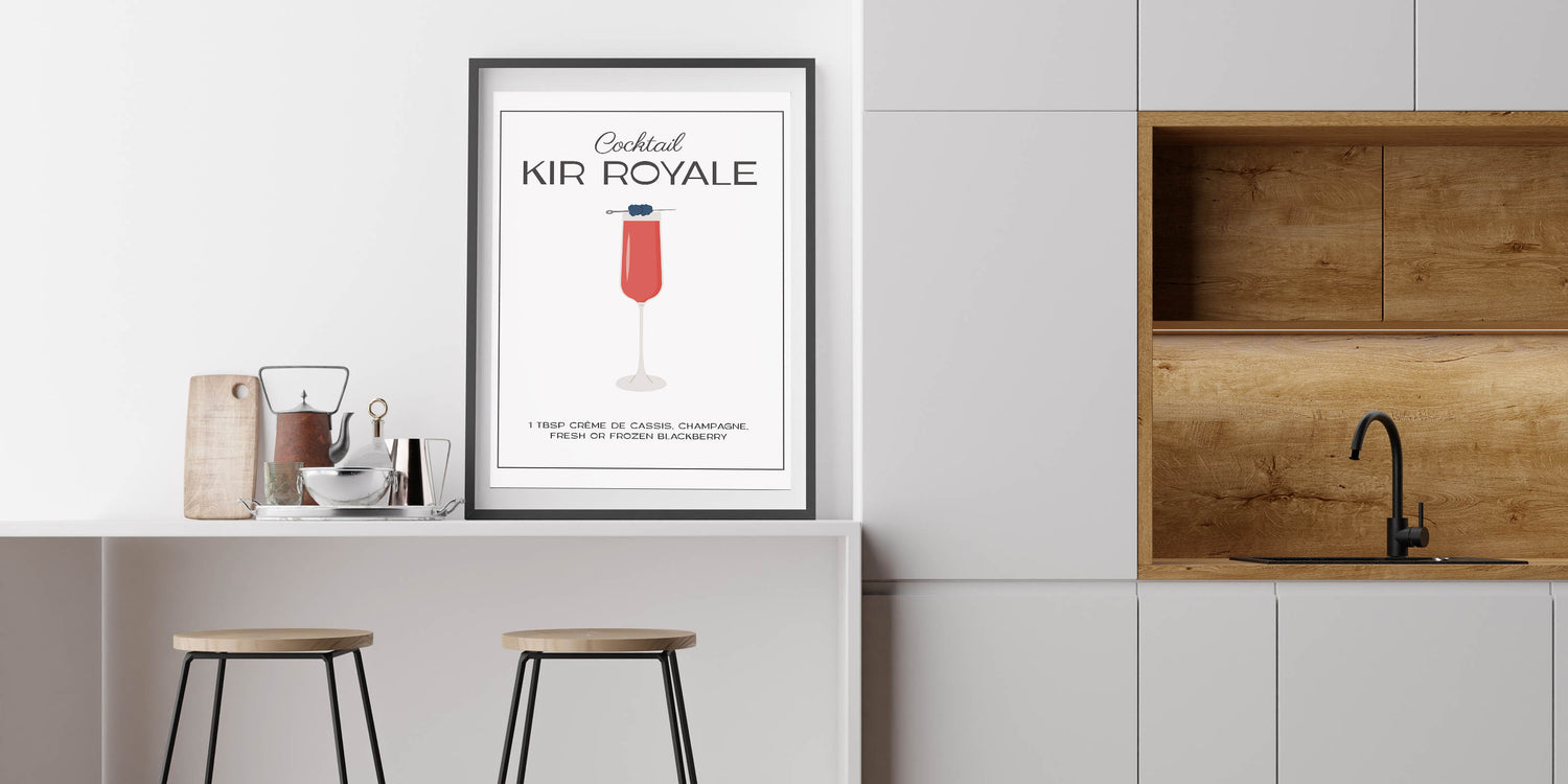 Kir Royale Cocktail Art – Elegant Drinks Wall Art for Bar & Kitchen