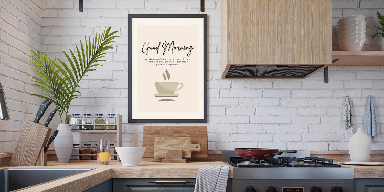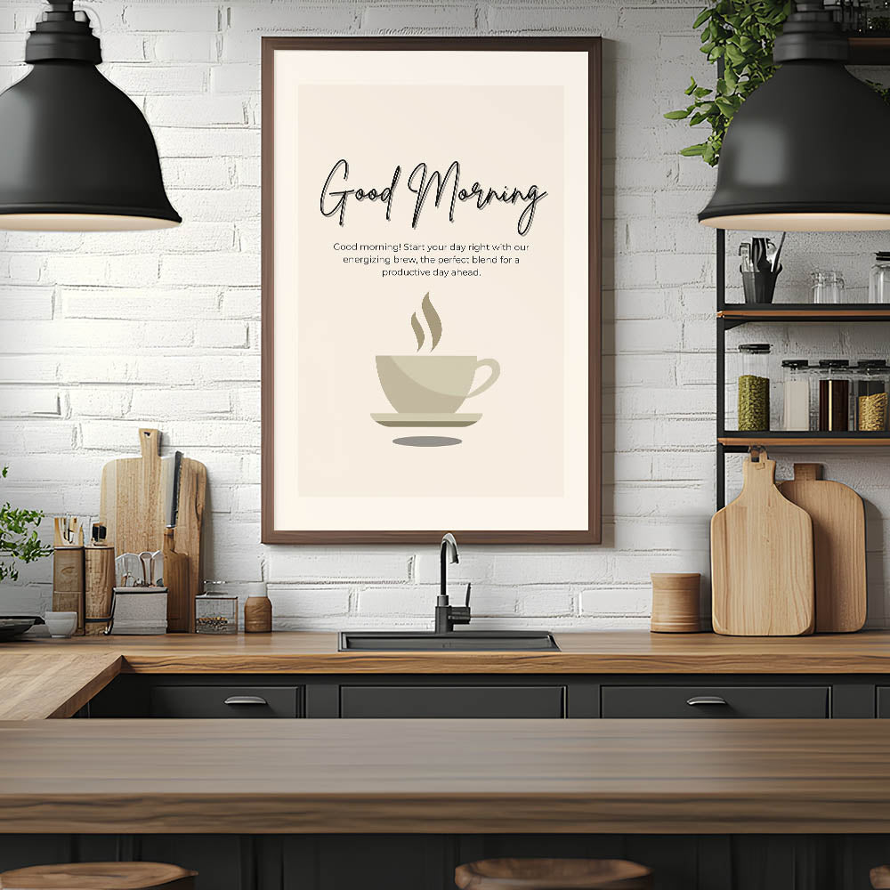 Minimalist Good Morning Coffee Art - Coffee Wall Art for Kitchens