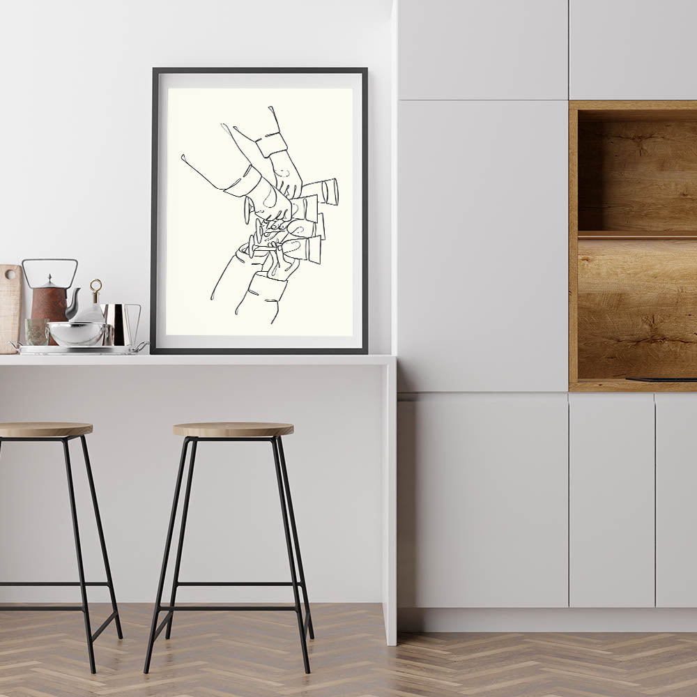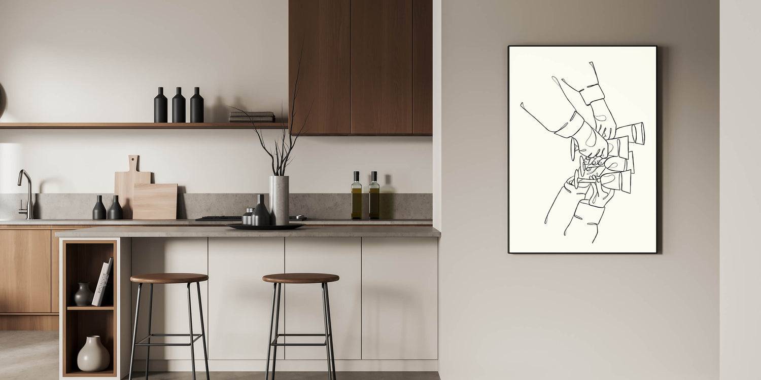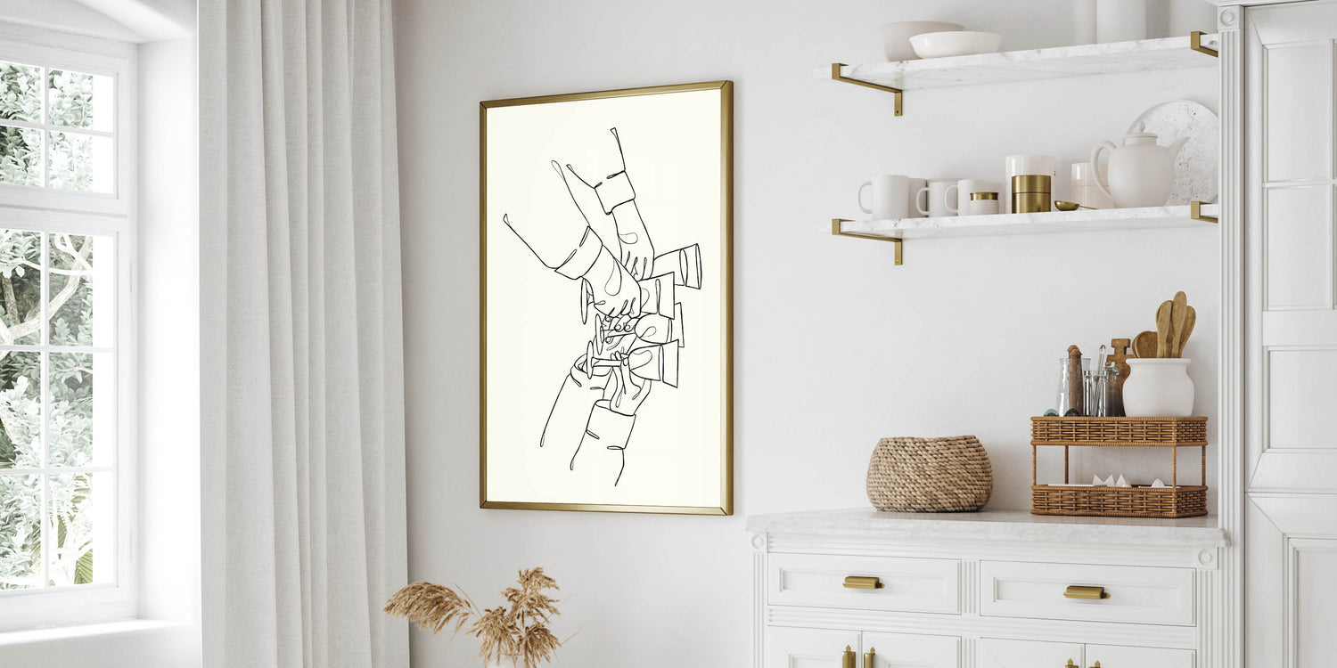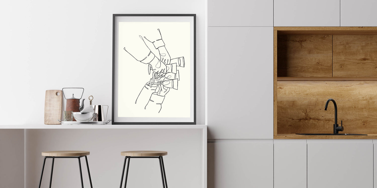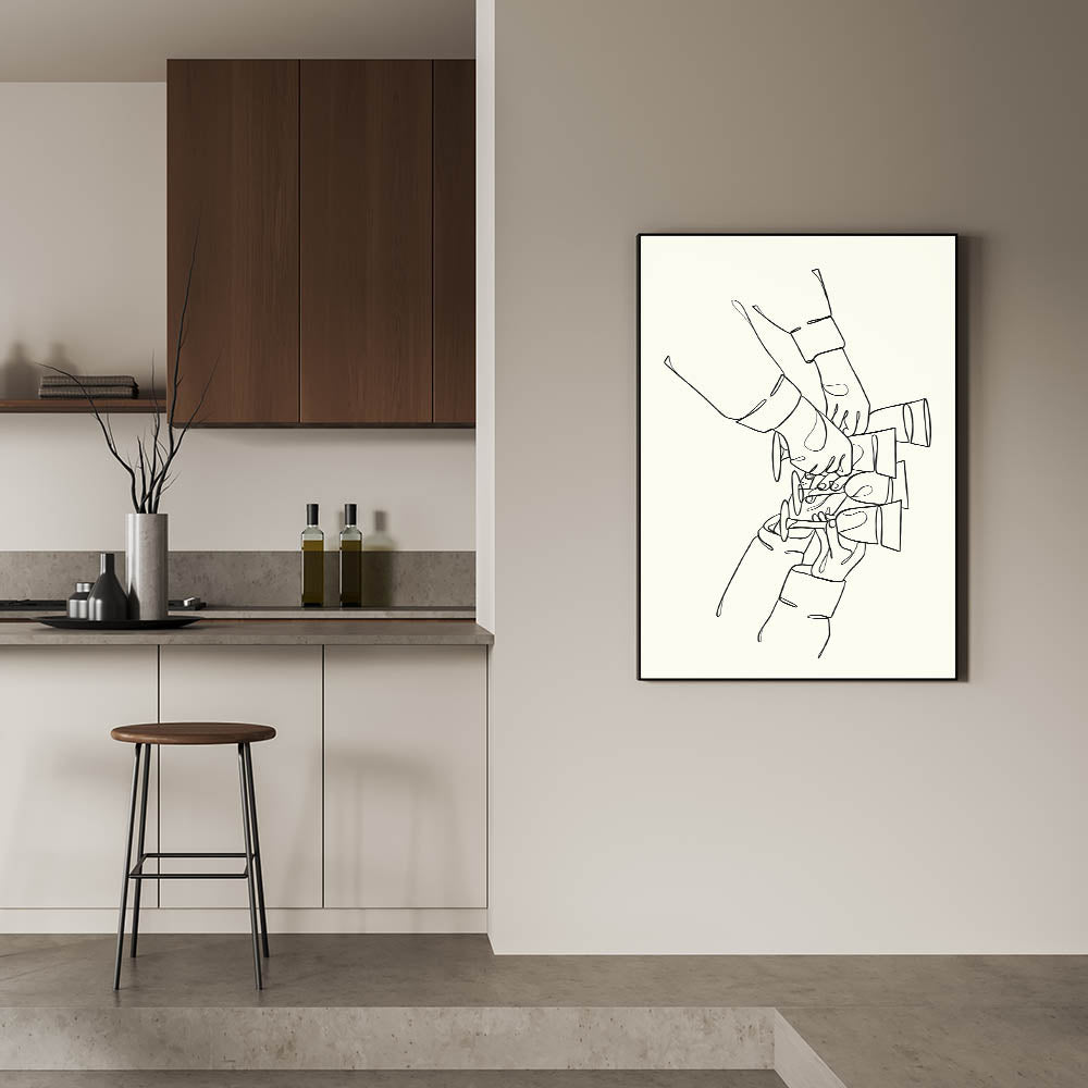 Minimalist Wine Toast Line Art - Drinks Wall Art for Bars & Kitchens
