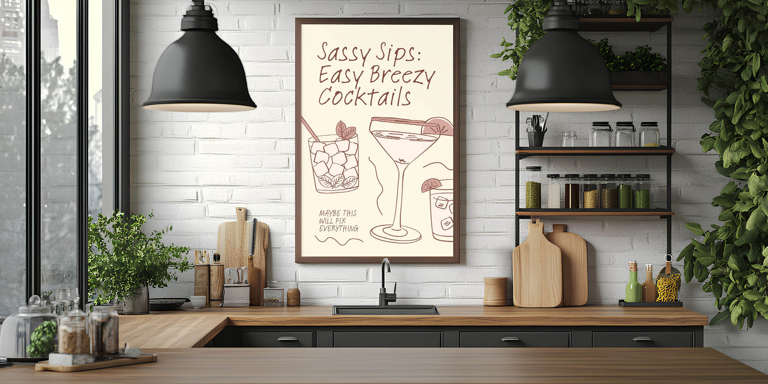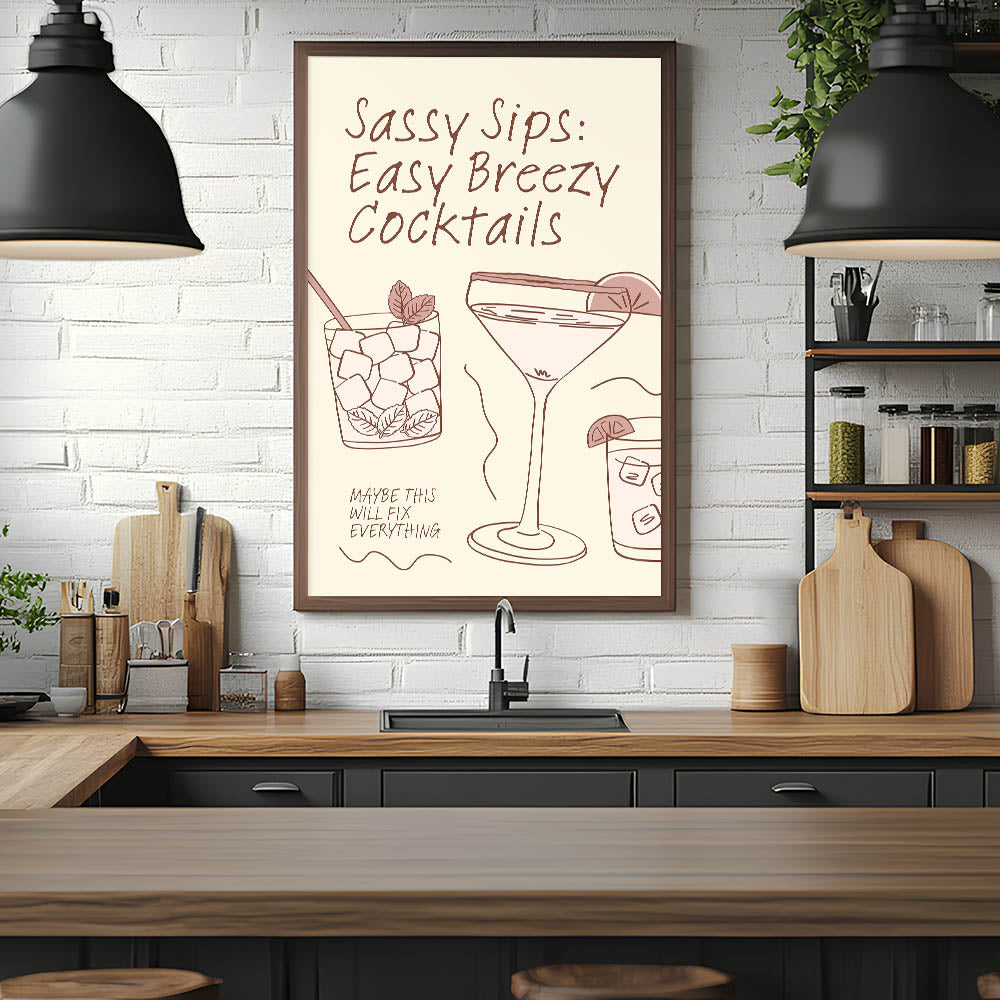 Sassy Sips Cocktail Art - Bar Wall Art for Kitchen & Lounge