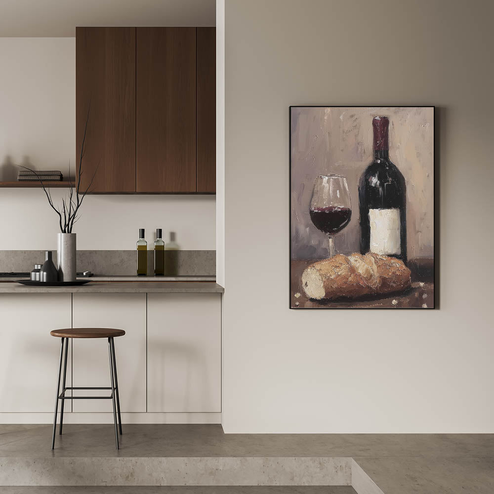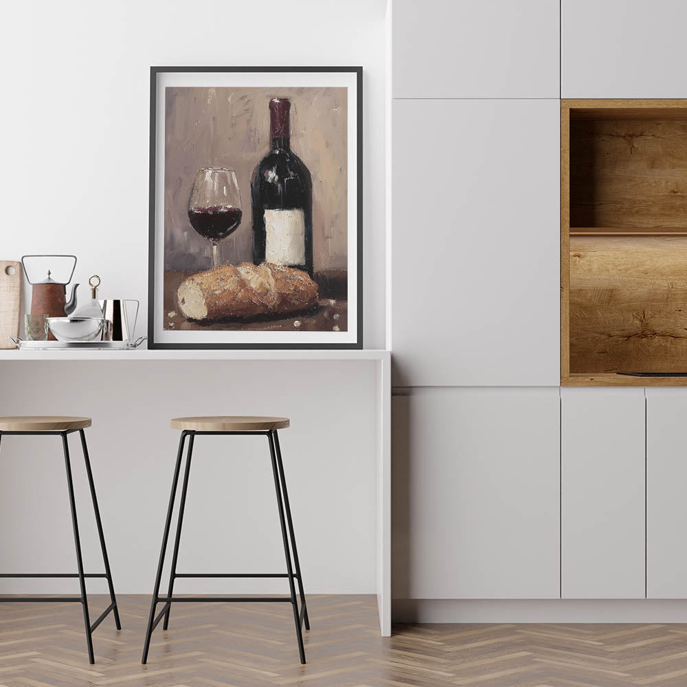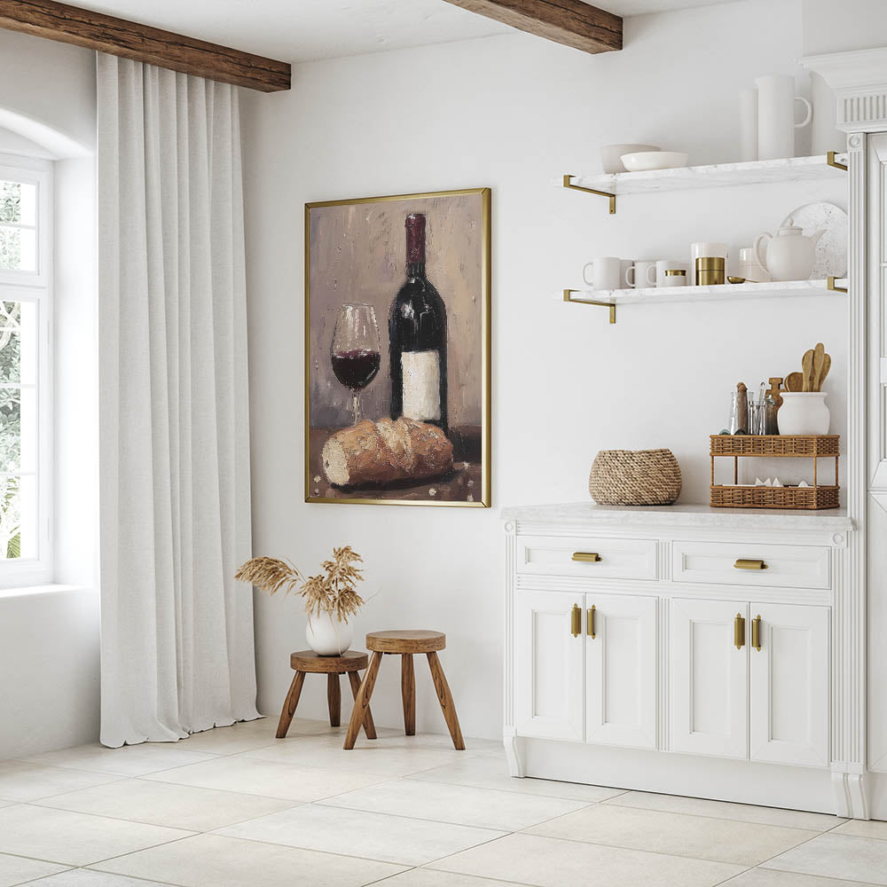 Wine & Bread Still Life Wall Art – Elegant Kitchen & Bar Decor