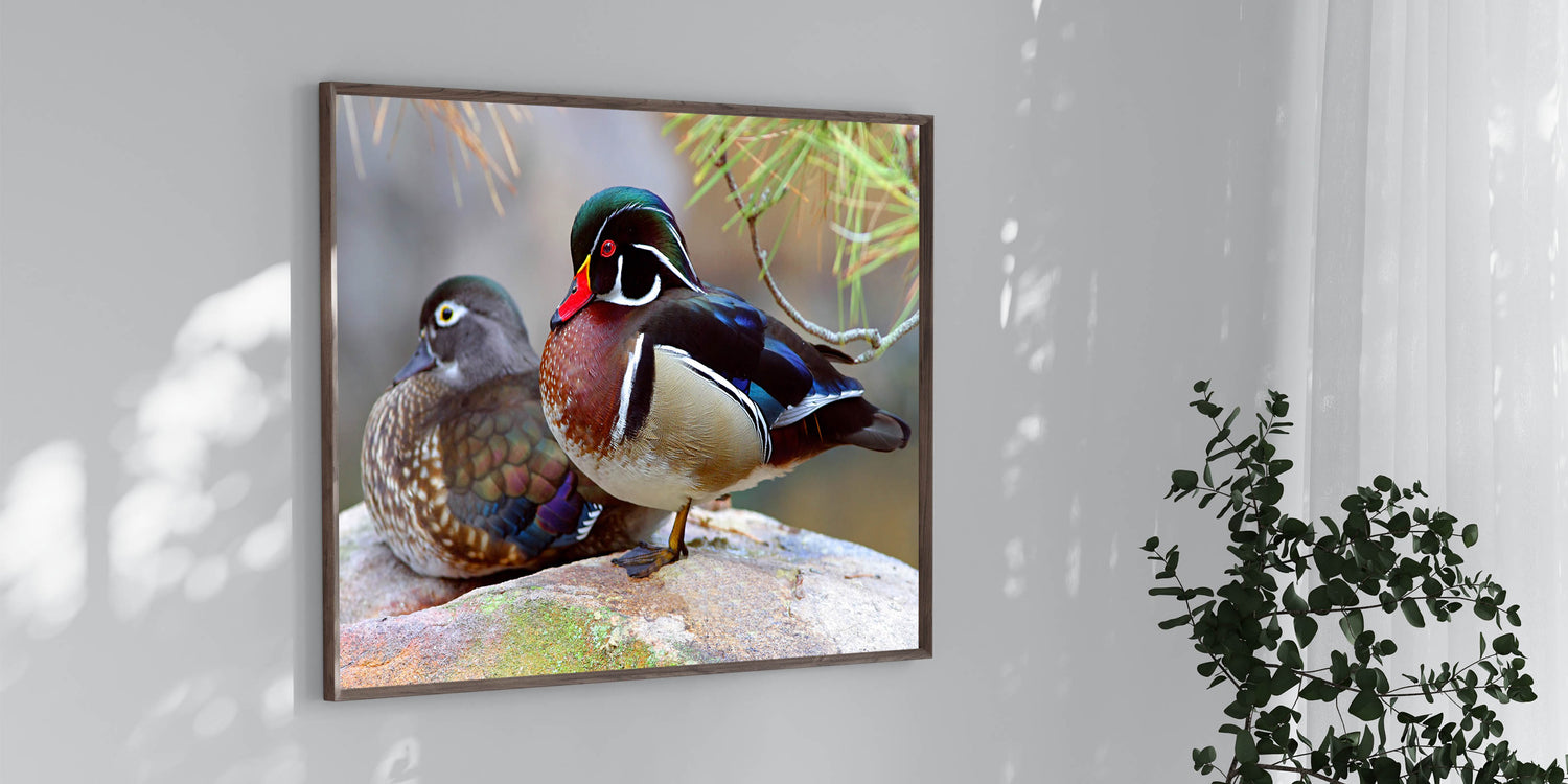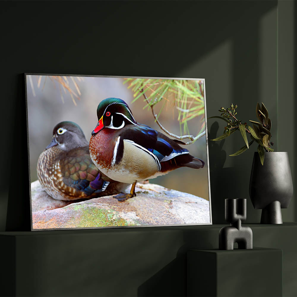 Bring the serene beauty of nature into your home with this stunning Wildlife Duck Wall Art. Featuring two exquisite ducks, this artwork captures the rich colors and intricate details of these majestic birds. Perfect for nature lovers and art enthusiasts alike, this Duck Canvas Print adds a touch of elegance to any space.