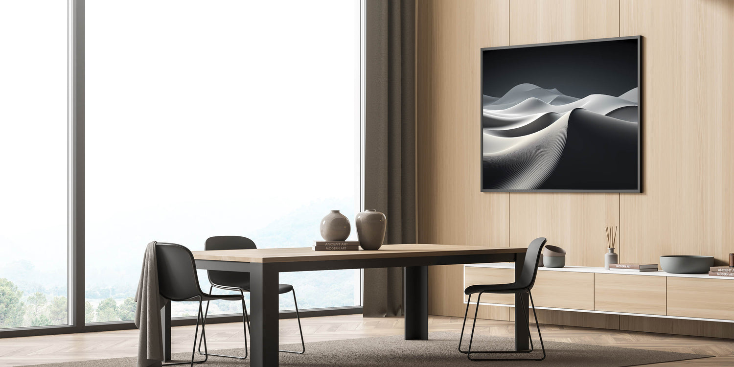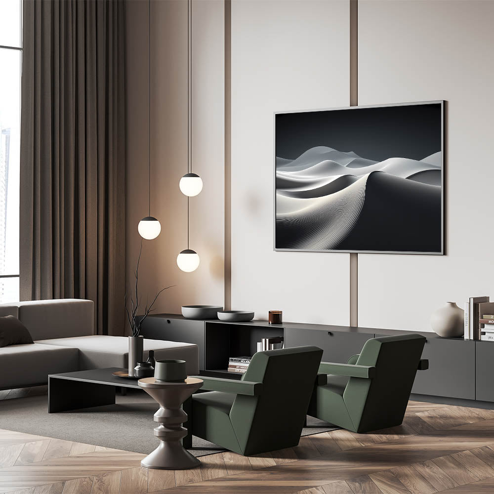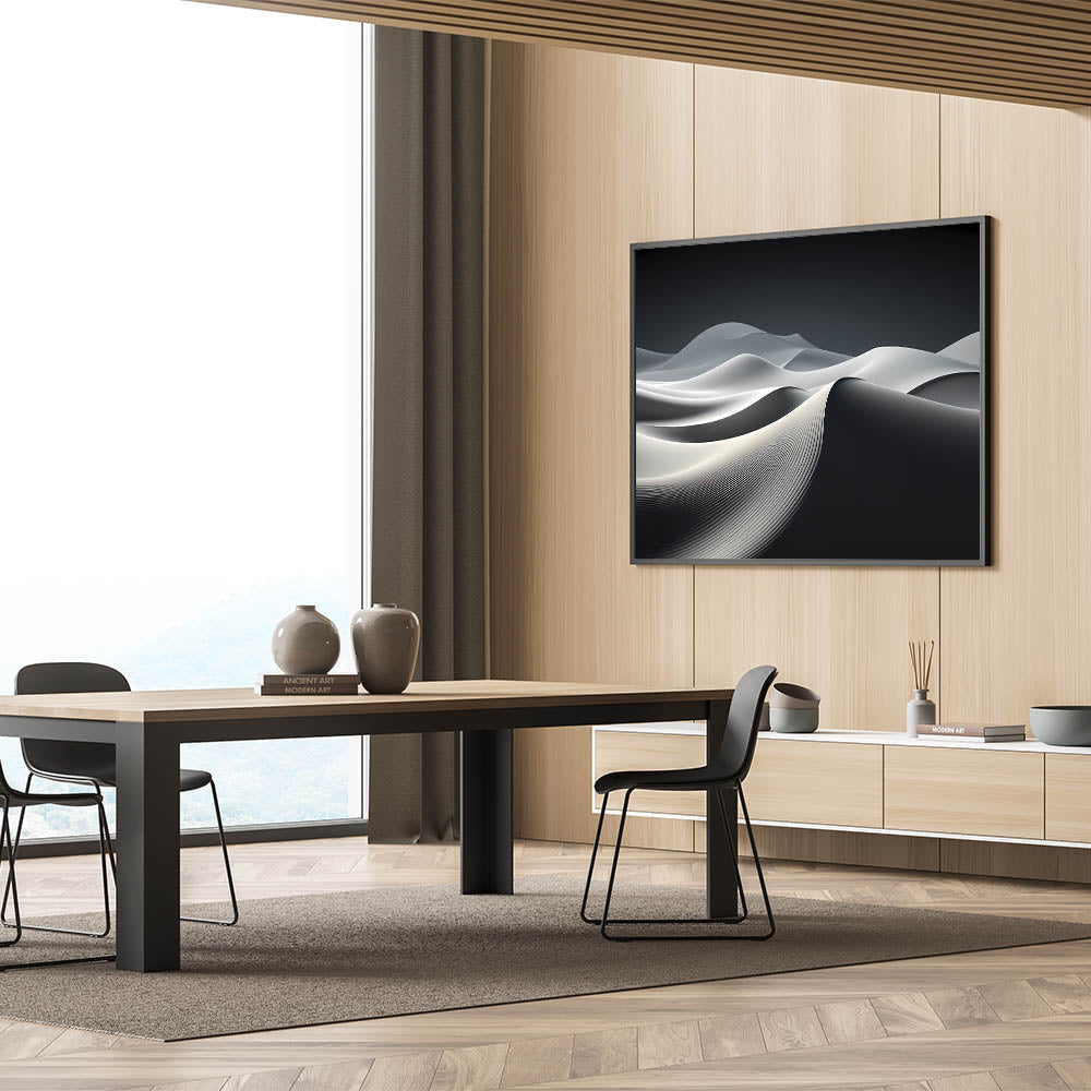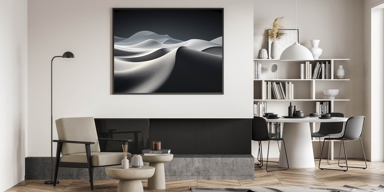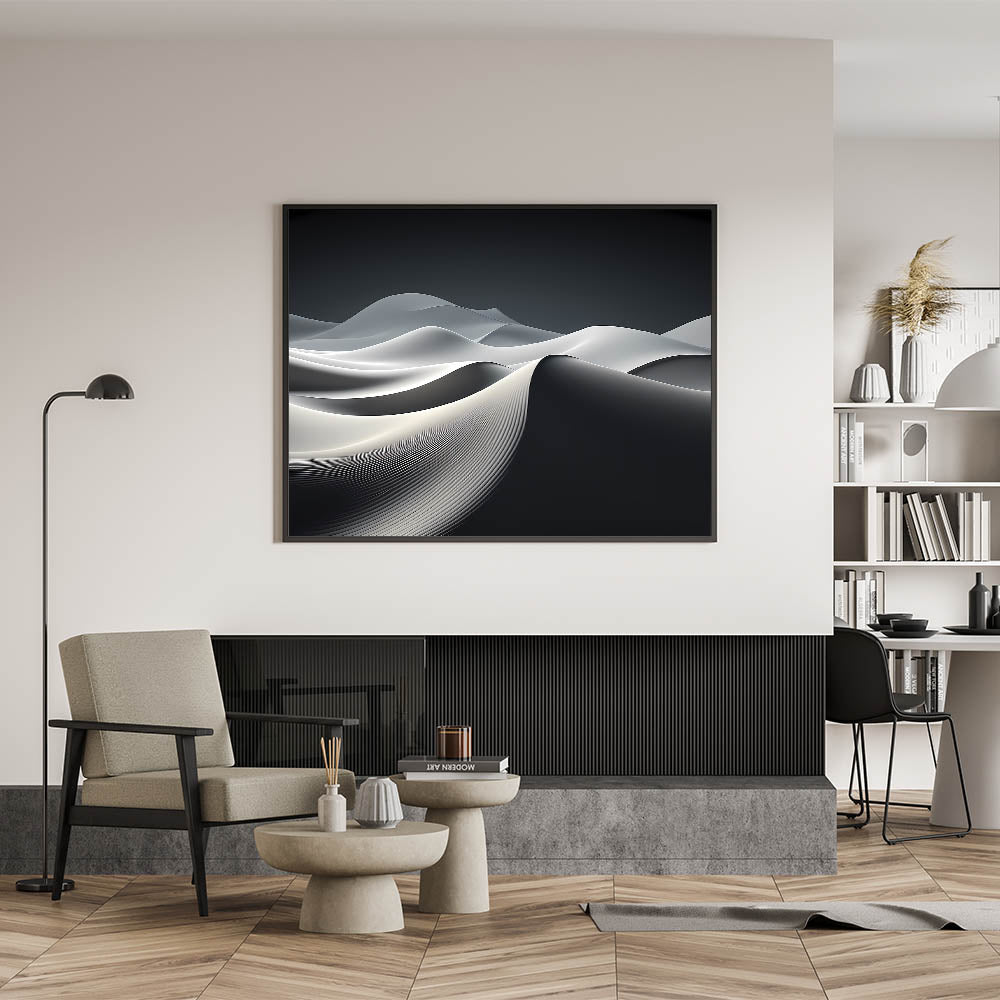 Modern Abstract Dune Wall Art - Sleek Desert Landscape in Grayscale