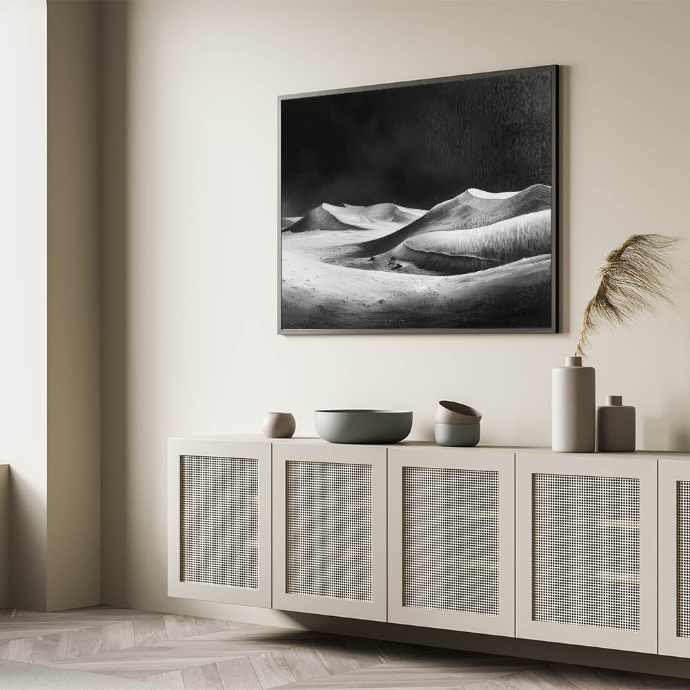 Monochrome Desert Dune Wall Art - Dramatic Black and White Landscape