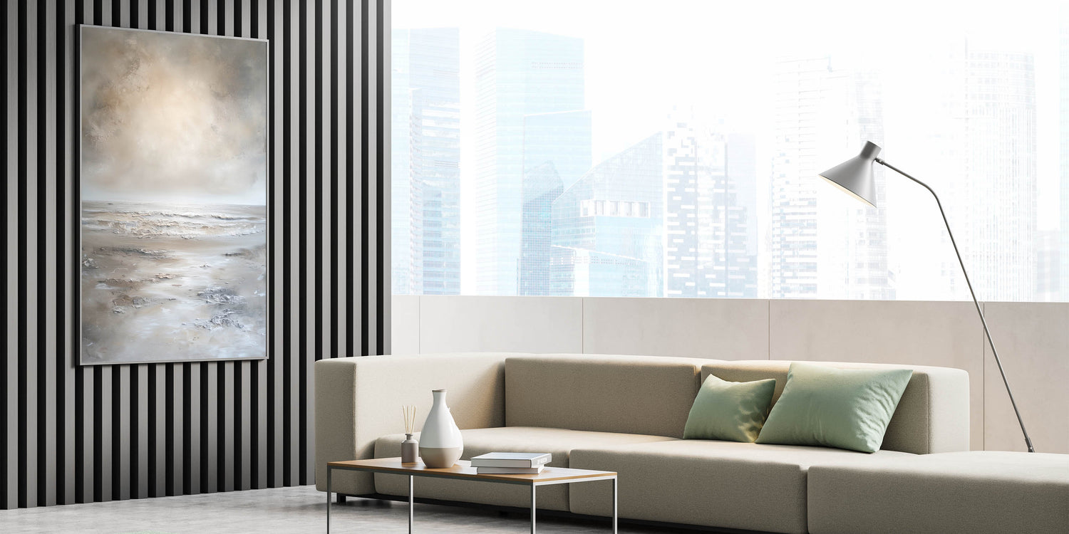 Calm Abstract Seascape Art - Neutral Toned Minimalist Landscape Canvas