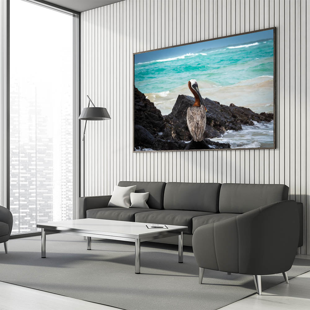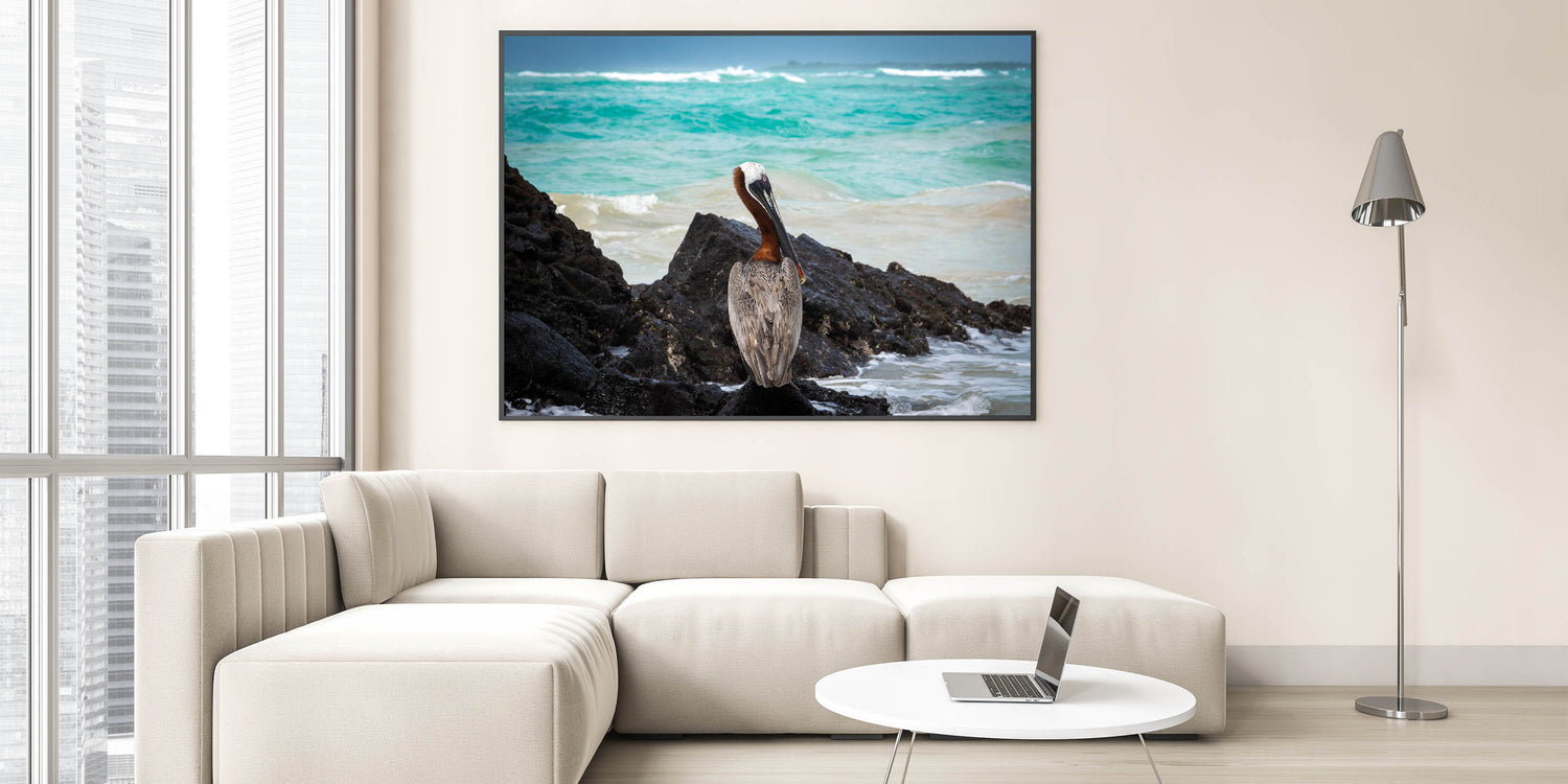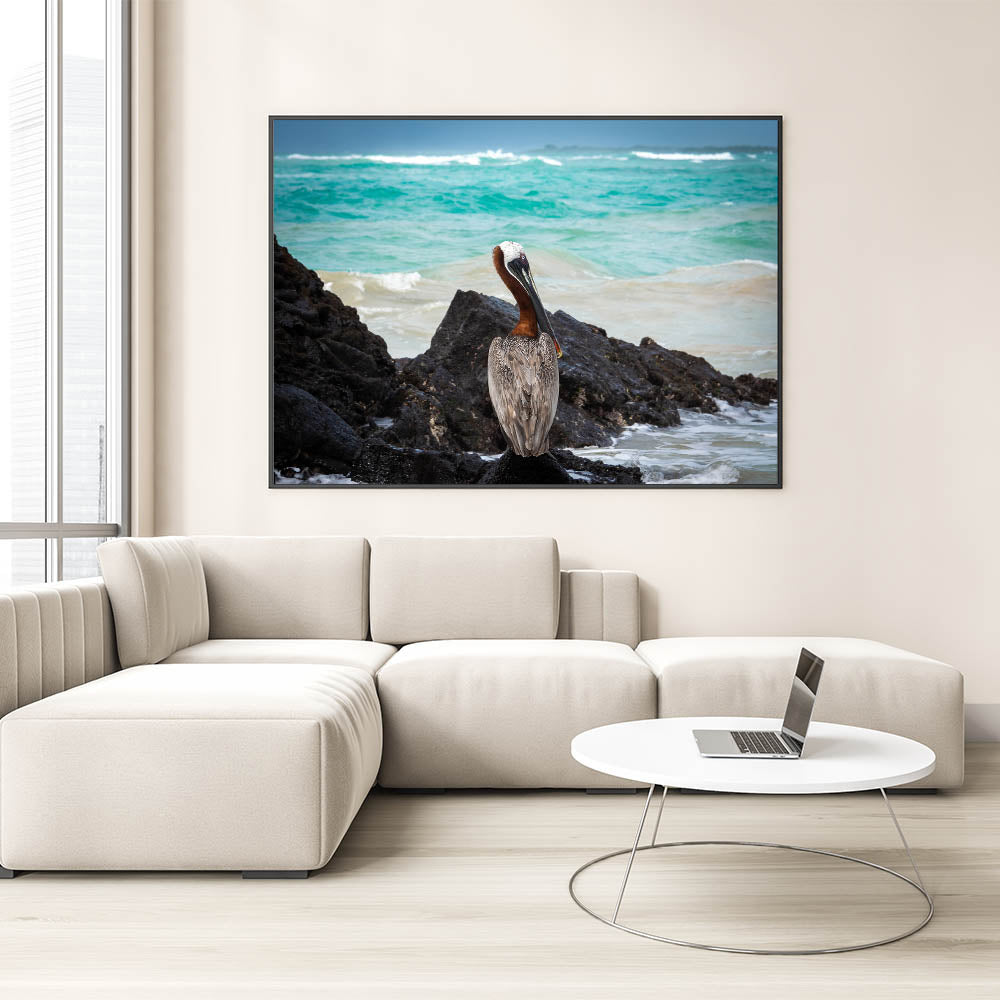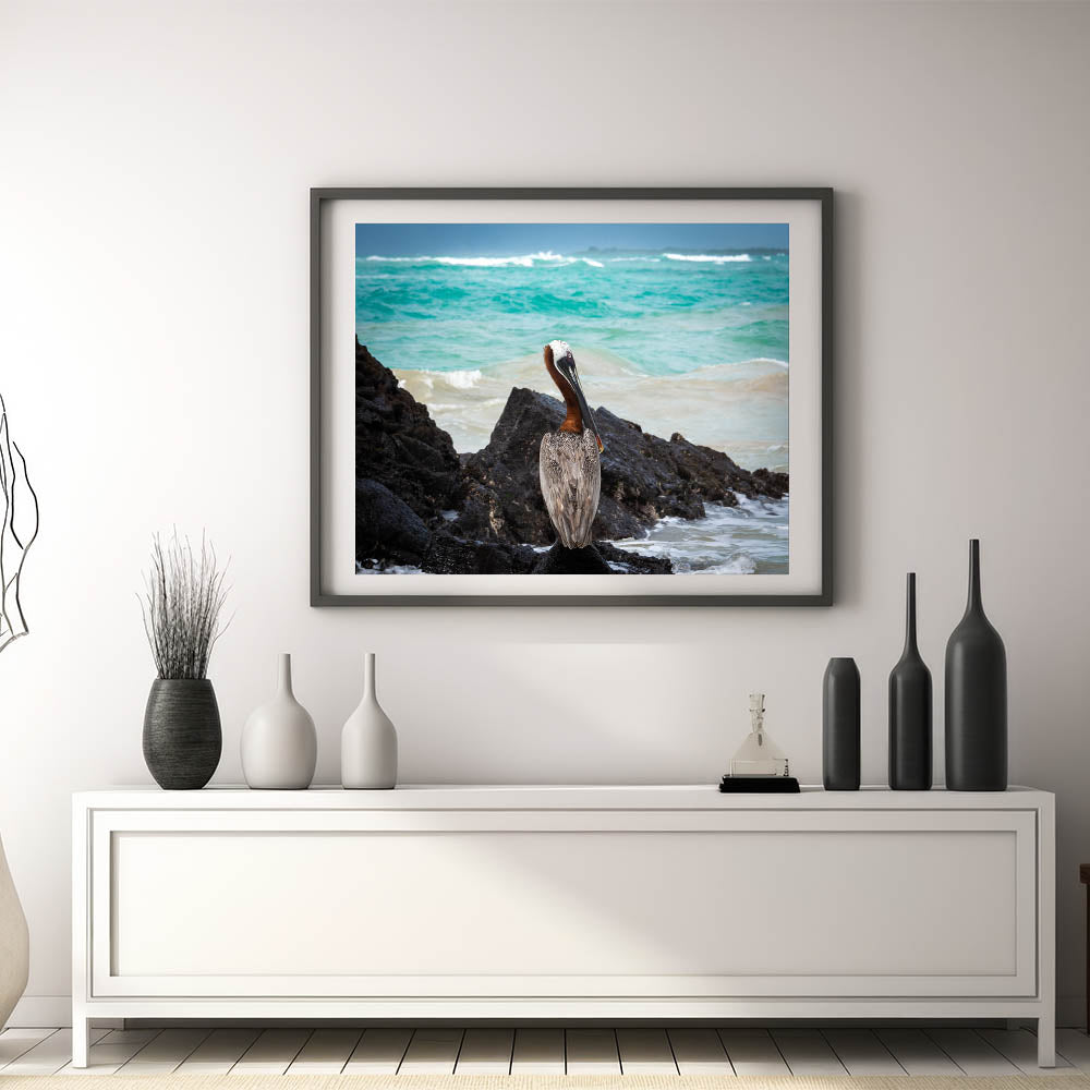 Celebrate Ecuador’s coastal wildlife with this captivating photographic print of a pelican perched on a rocky shoreline. The stunning turquoise waters and rugged rocks provide the perfect backdrop, capturing the essence of Ecuador’s diverse and rich natural environment. This artwork is ideal for nature lovers, bird enthusiasts, or anyone looking to bring a touch of coastal serenity into their space. Whether in a living room, office, or beach-themed room, this piece will evoke a sense of calm and connection to nature.