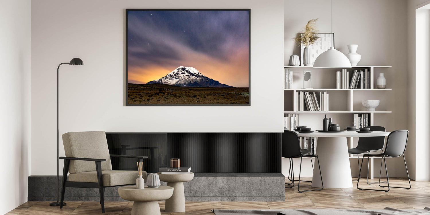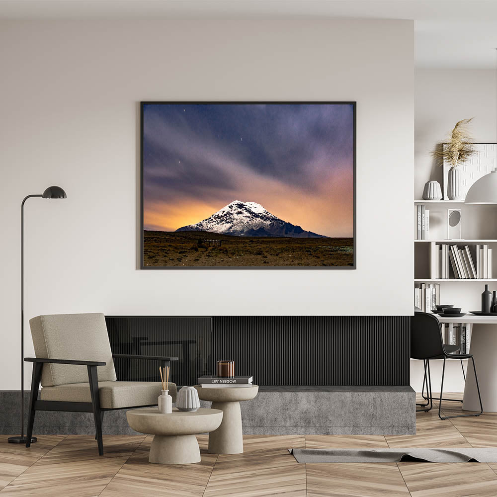 Bring the tranquil majesty of Ecuador’s Chimborazo Volcano into your home with this captivating piece of wall art, perfect for nature enthusiasts and travelers alike.