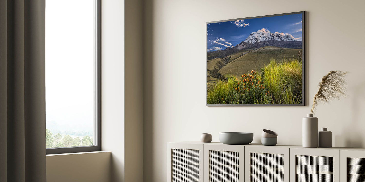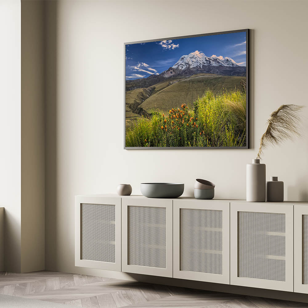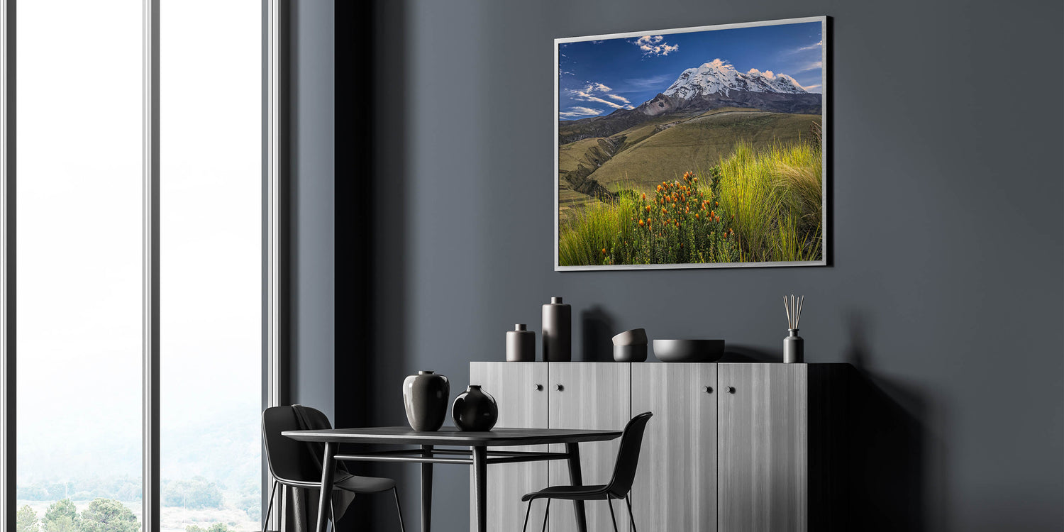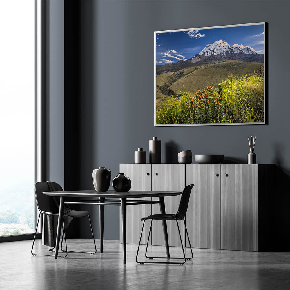 • High-quality Ecuador landscape art prints, featuring the Chimborazo Mountain and surrounding flora