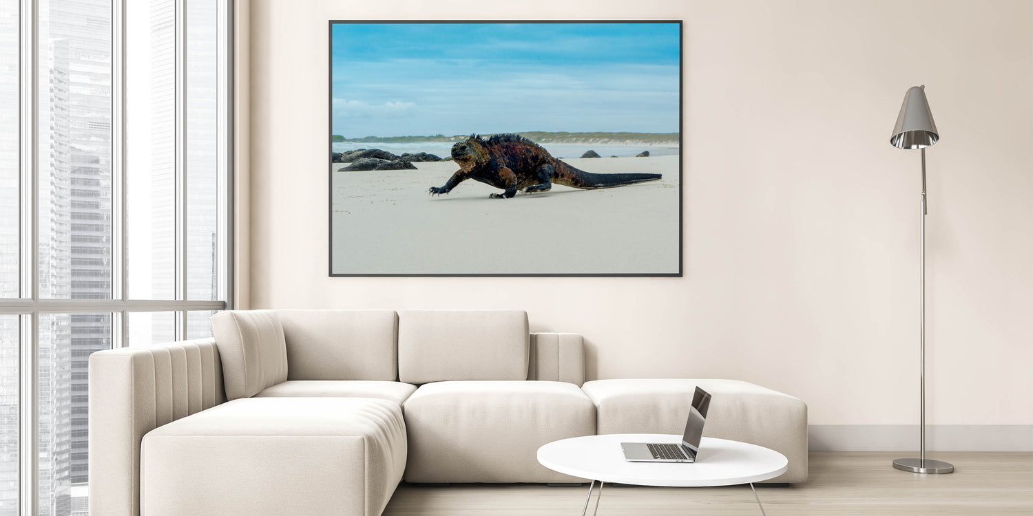 This marine iguana canvas art transports you to the remote beaches of the Galapagos, adding an adventurous yet peaceful touch to your living room, bedroom, or office.