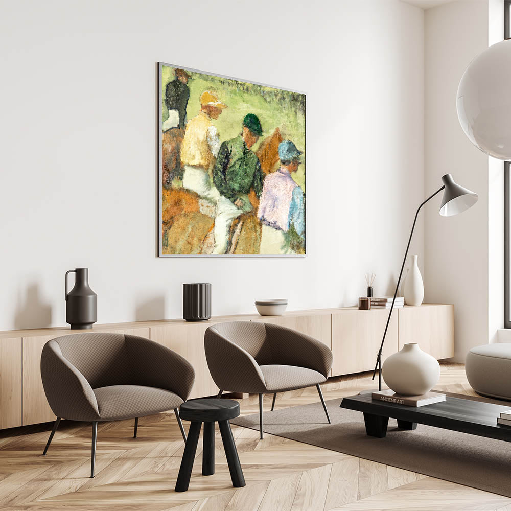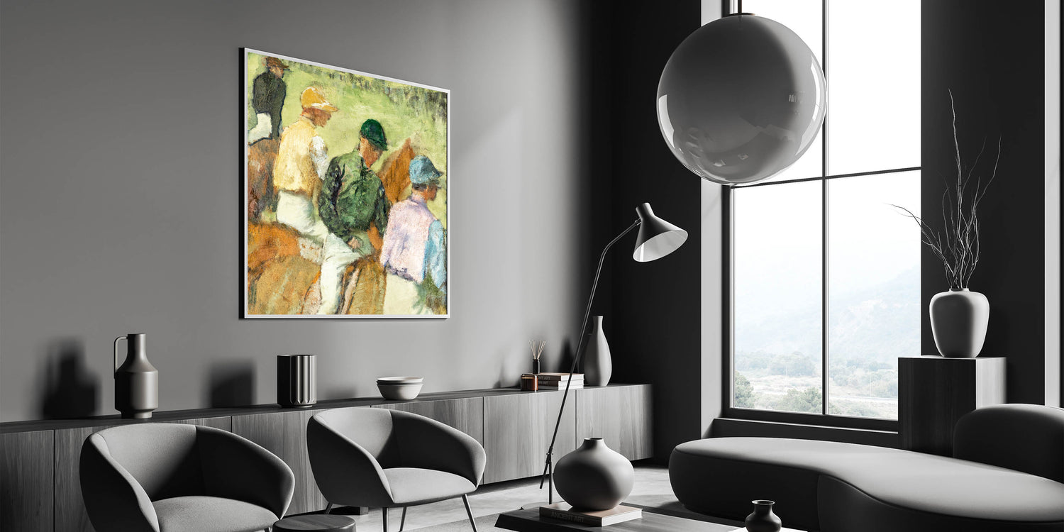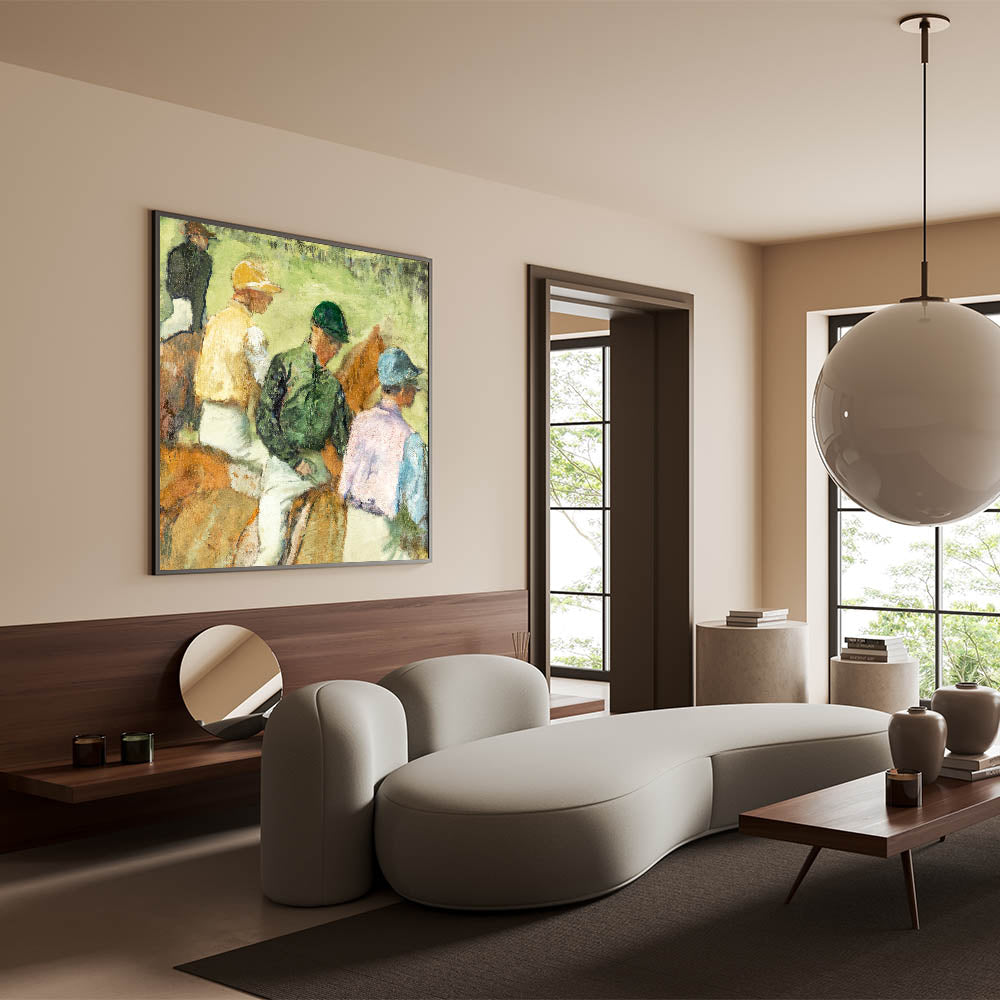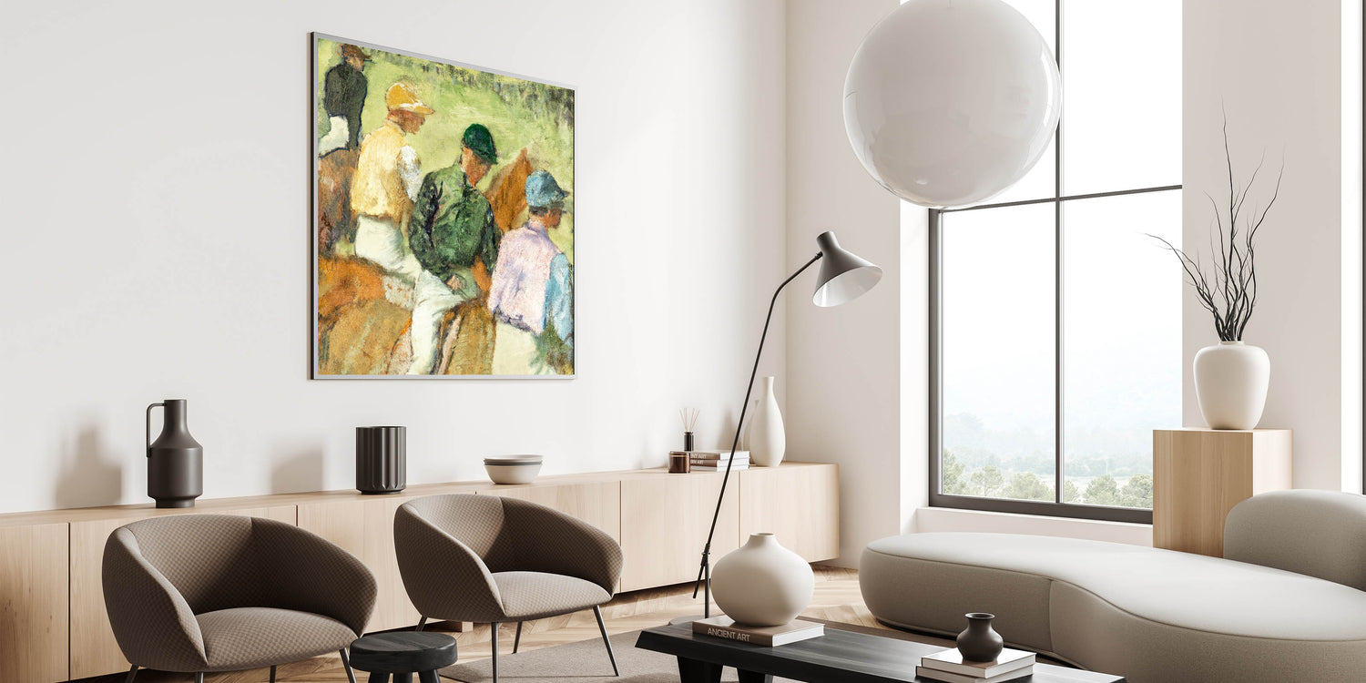 Add a timeless piece of high-quality Degas prints to your art collection with this intimate and dynamic portrayal of jockeys. Whether as a centerpiece in your living room or a subtle addition to your study, this art print is ideal for bringing the elegance of French Impressionist wall art into your home.