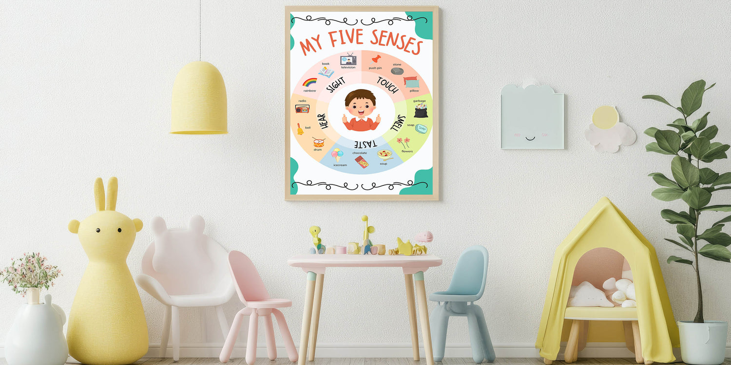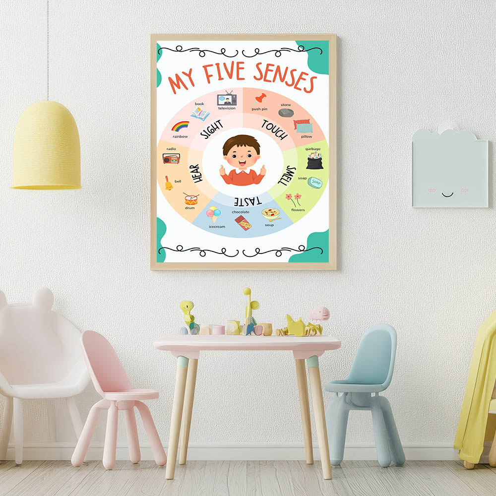 - Fun and interactive Learning Poster for Kids covering the five senses.