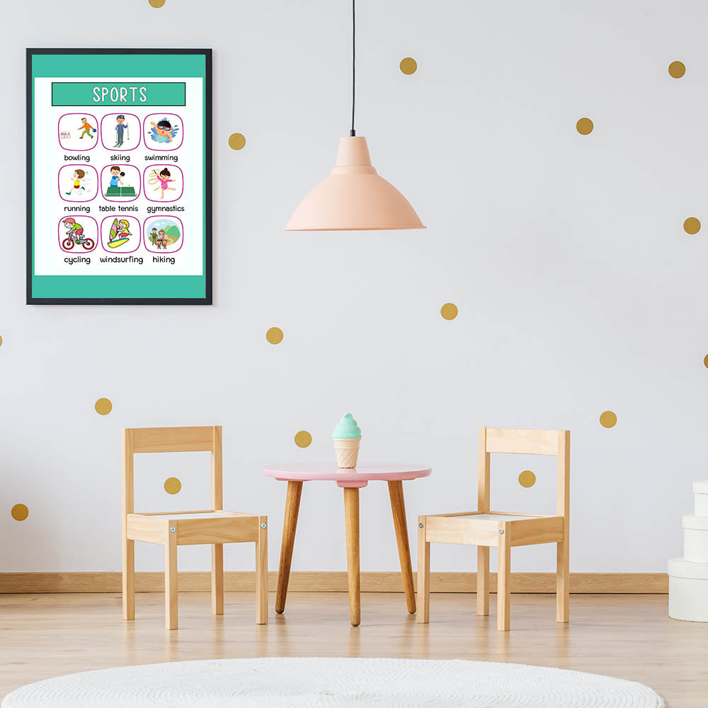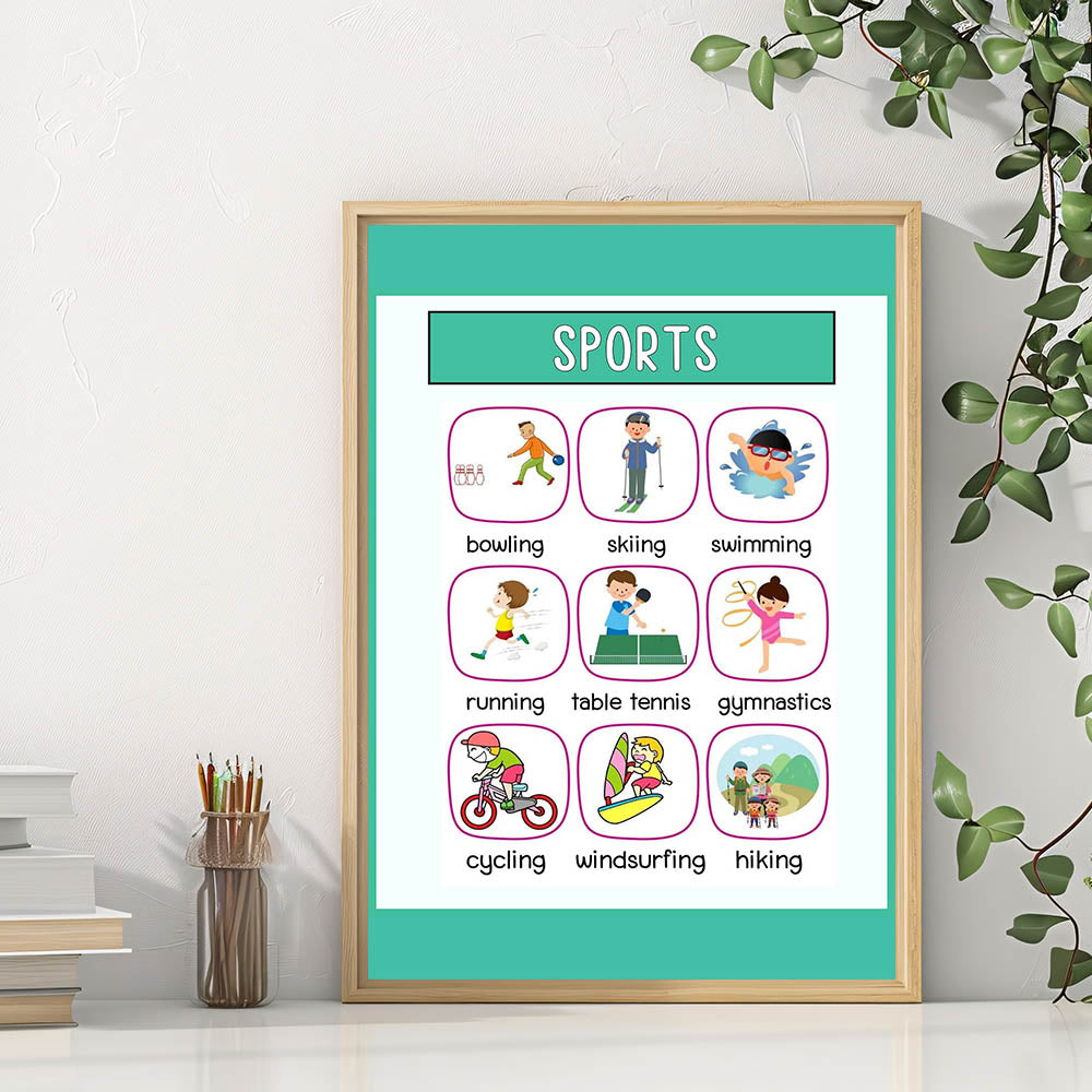 This Educational Art for Kids’ Rooms is perfect for teaching children about physical activities, encouraging them to stay active while expanding their knowledge of different sports. Whether displayed in classrooms, daycare centers, or home learning spaces, this learning poster for kids creates a positive and engaging environment for young learners.
