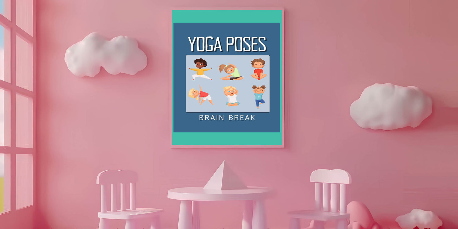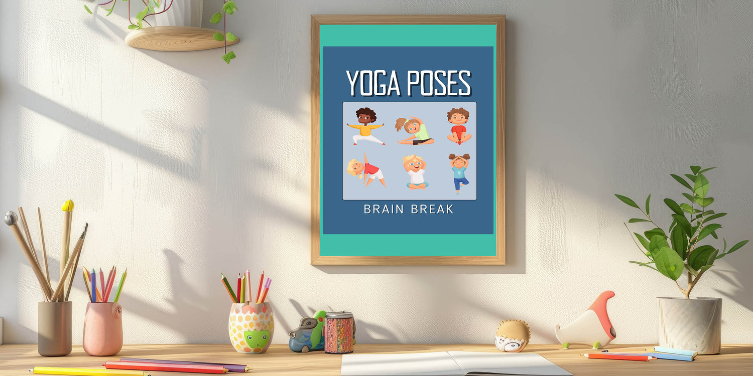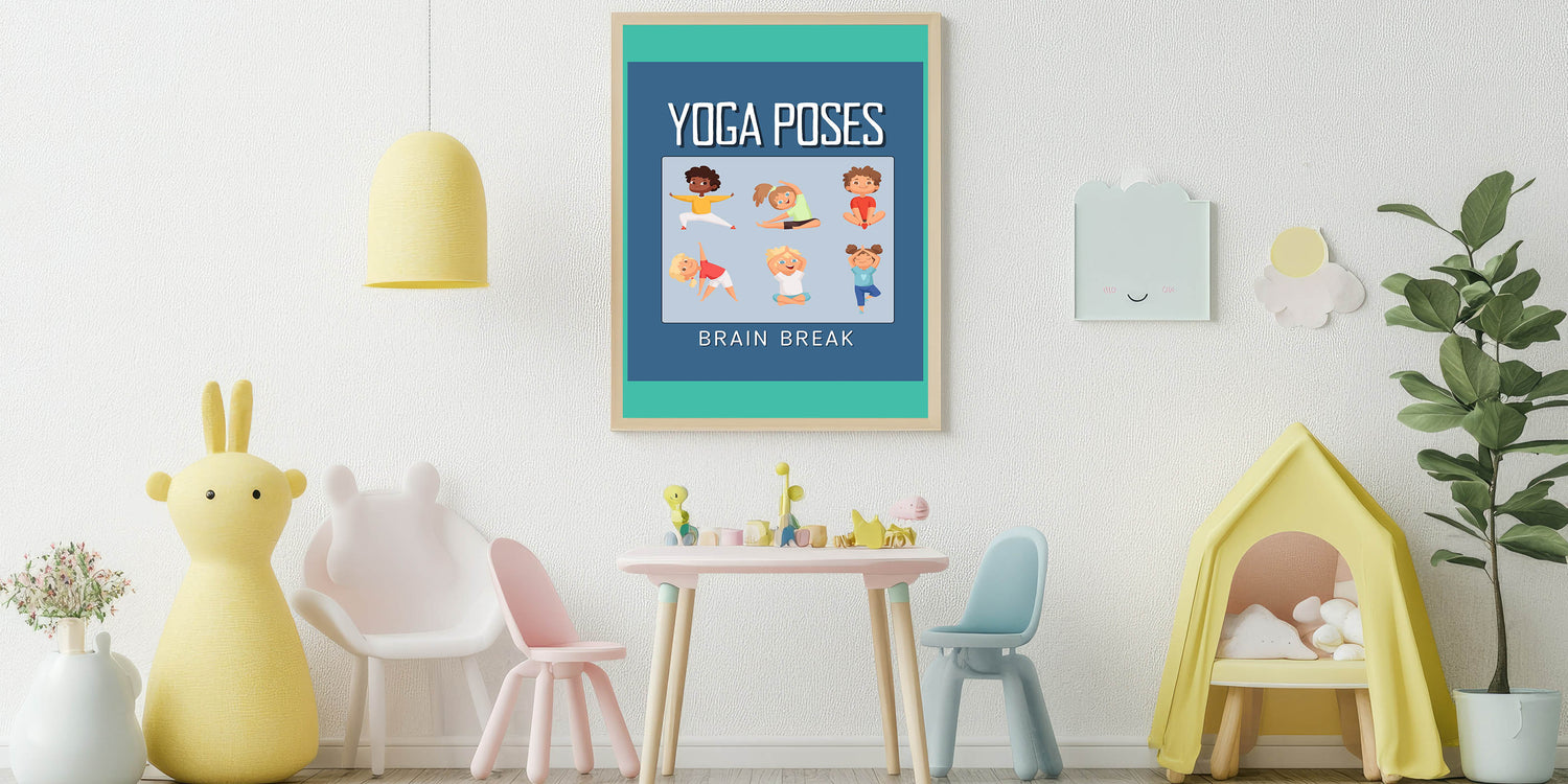 Encourage mindfulness and movement with this Classroom Educational Poster, featuring fun and engaging yoga poses for kids designed for brain breaks. This colorful illustration showcases children performing simple yoga postures, making it a perfect addition to classrooms, kids' playrooms, and homeschool spaces.