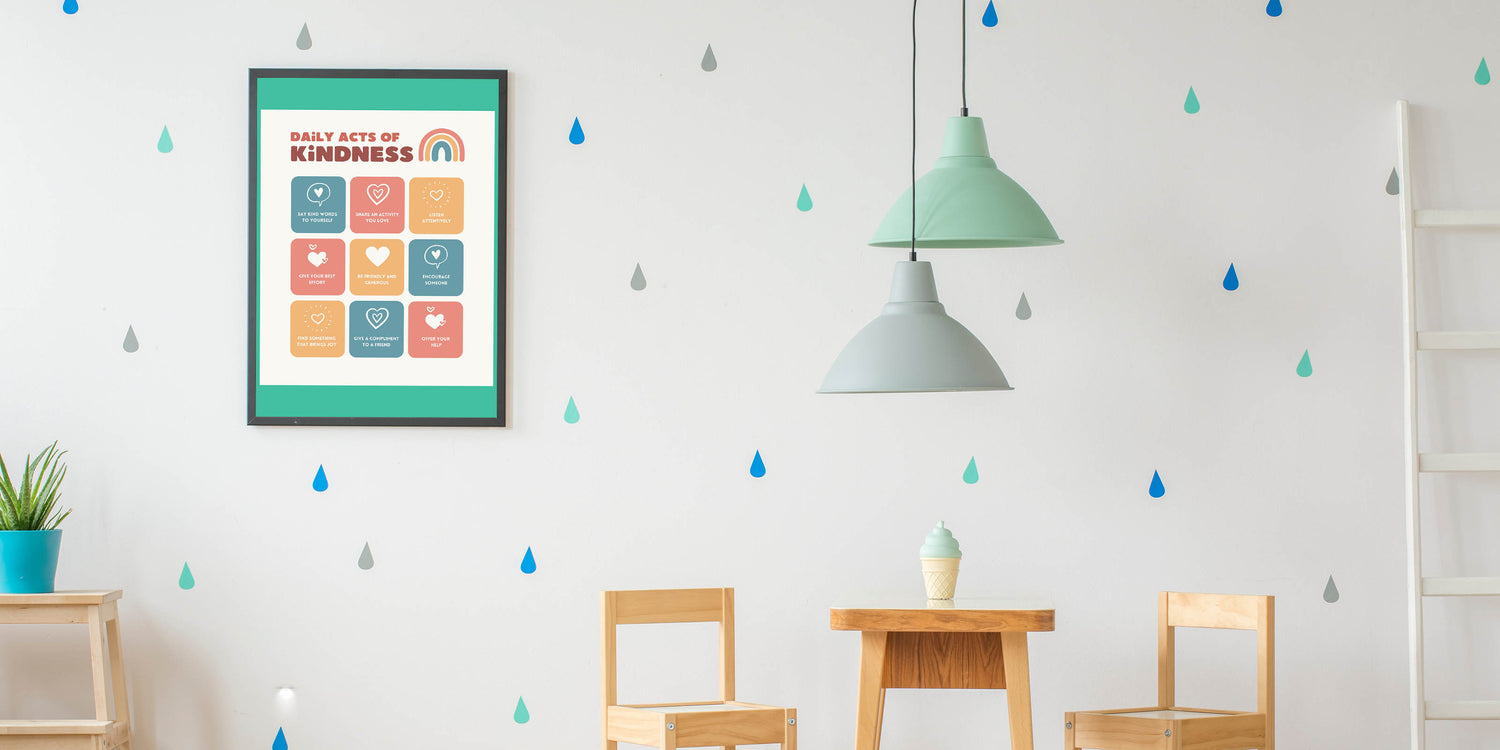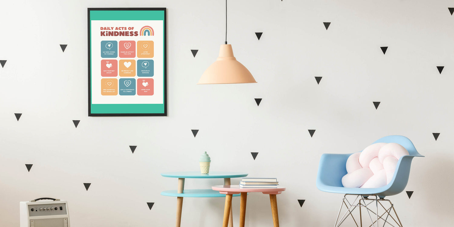- Educational Art for Kids' Rooms that encourages kindness, generosity, and empathy