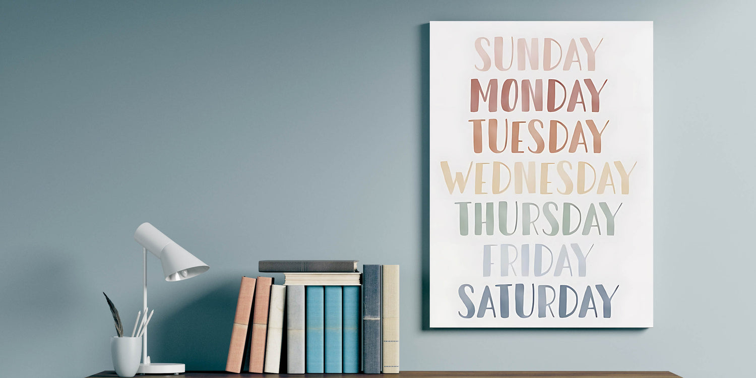 Days of the Week Kids Educational Wall Art - Learning Poster for Classrooms