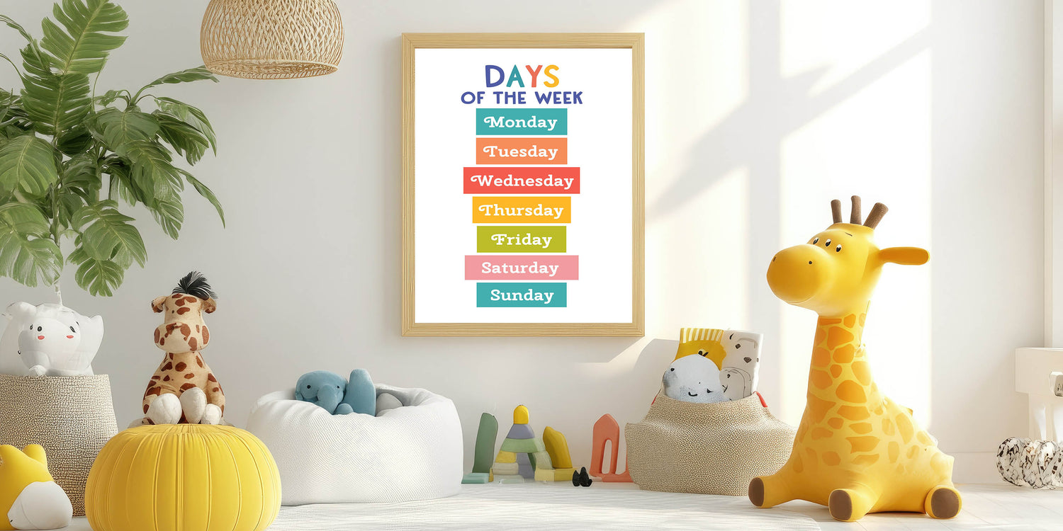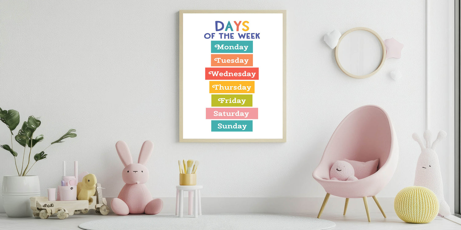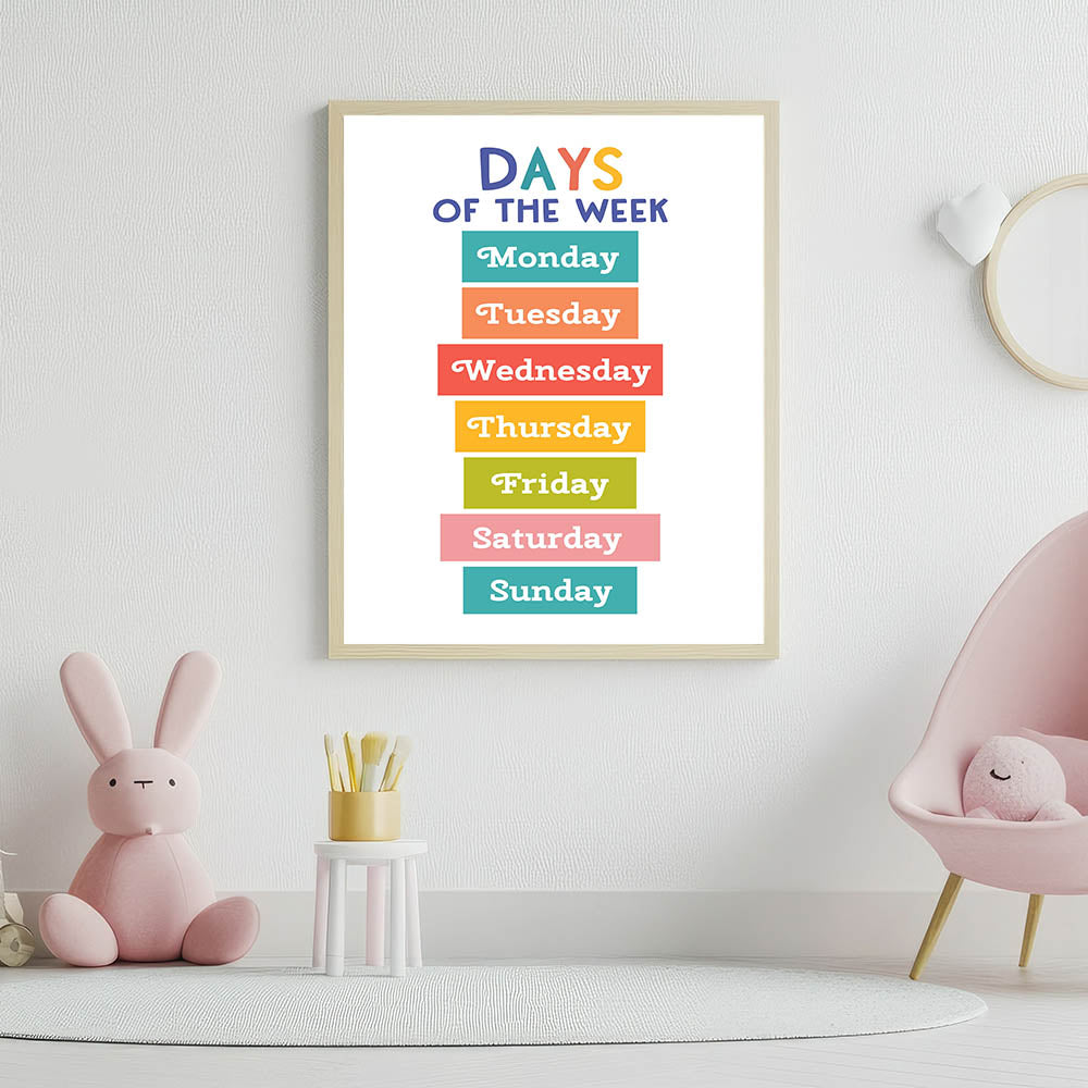 Days of the Week Learning Wall Art - Kids Educational Poster