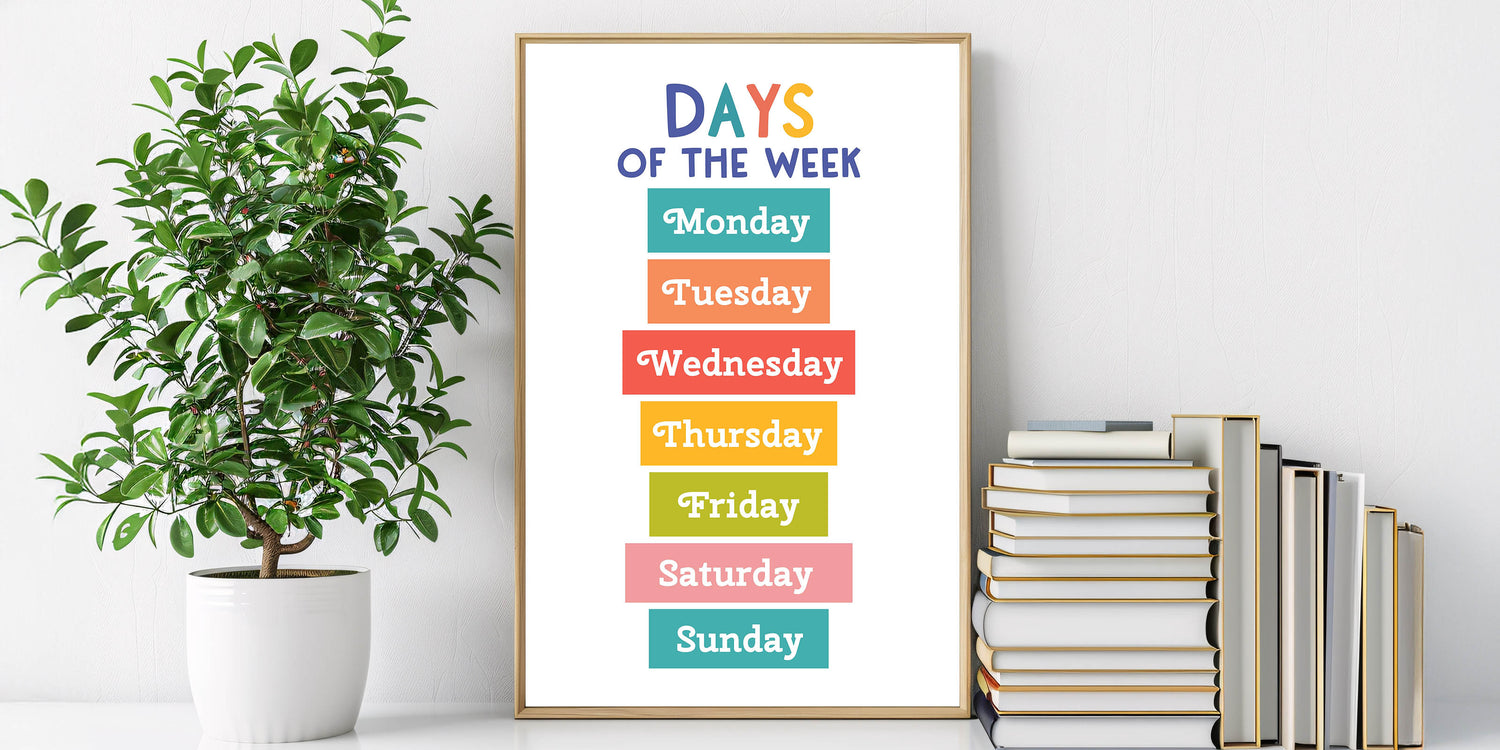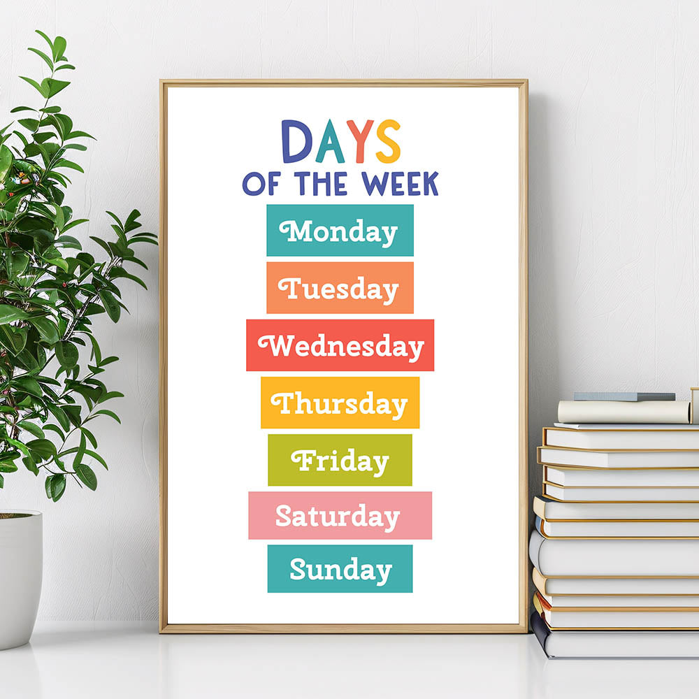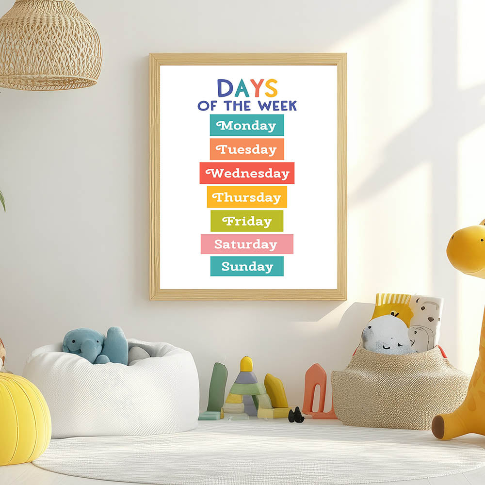 Days of the Week Learning Wall Art - Kids Educational Poster