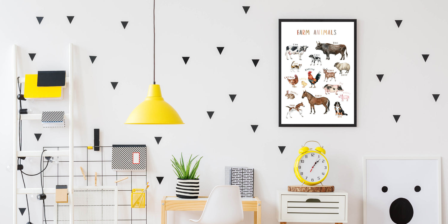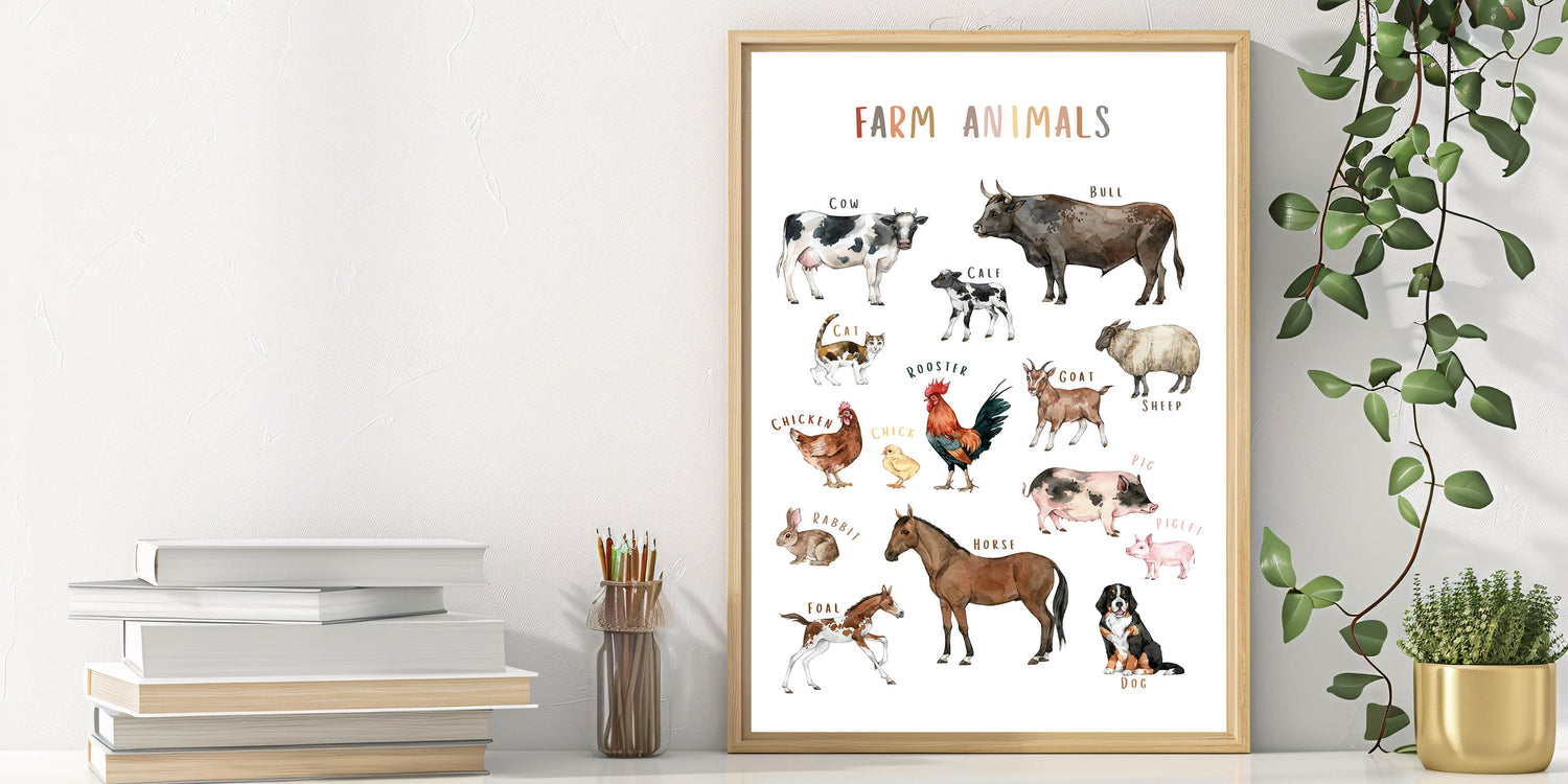 Farm Animals Kids Educational Wall Art - Learning Poster for Classrooms