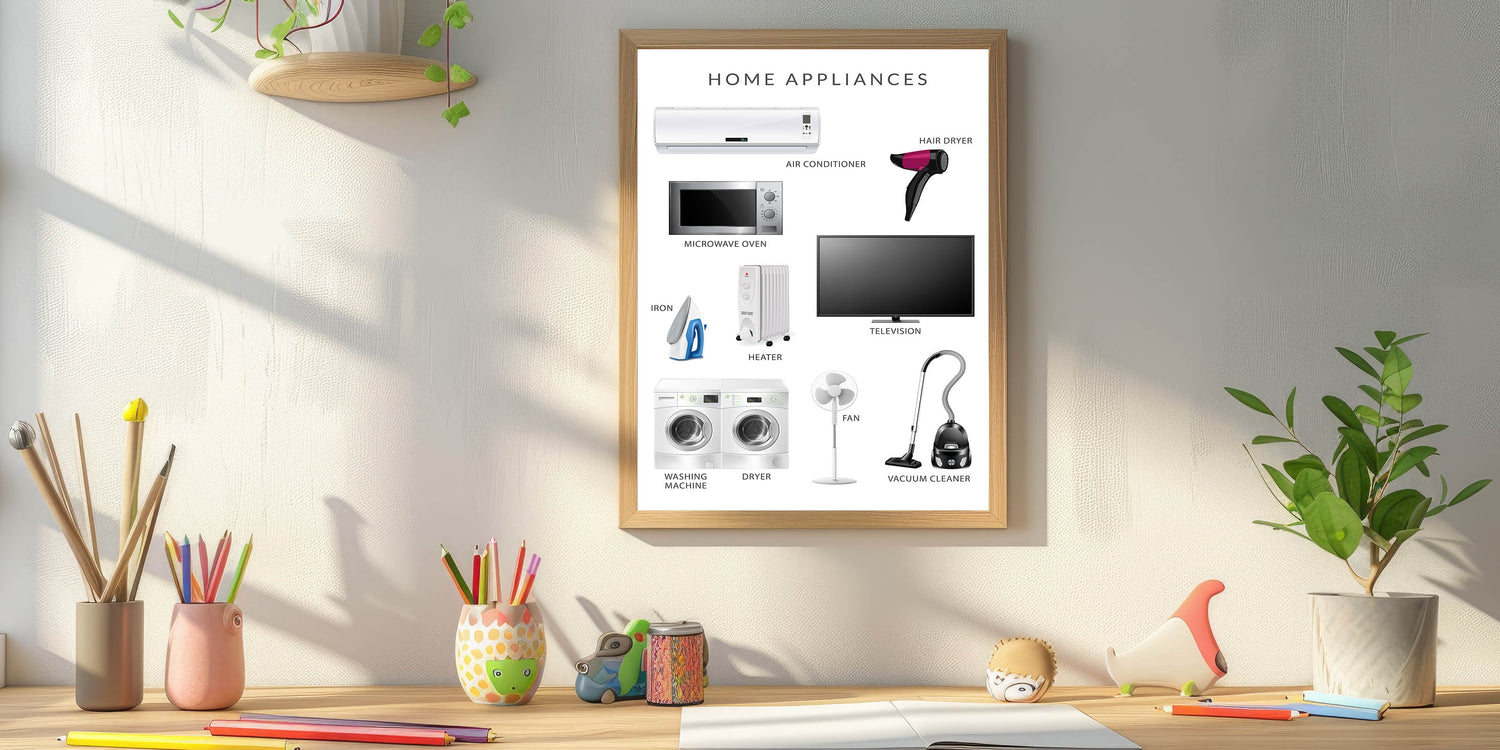 Home Appliances Kids Educational Wall Art - Learning Poster