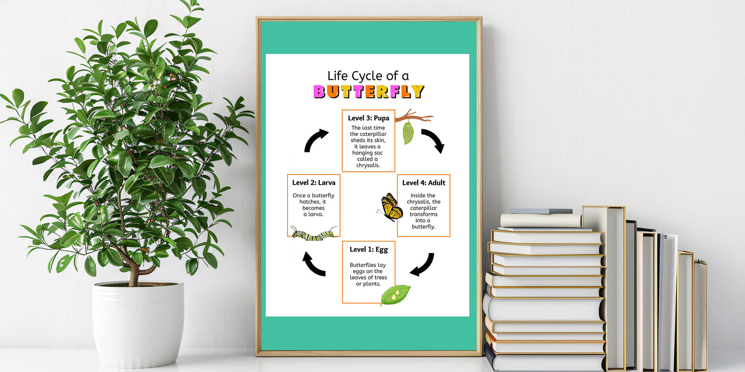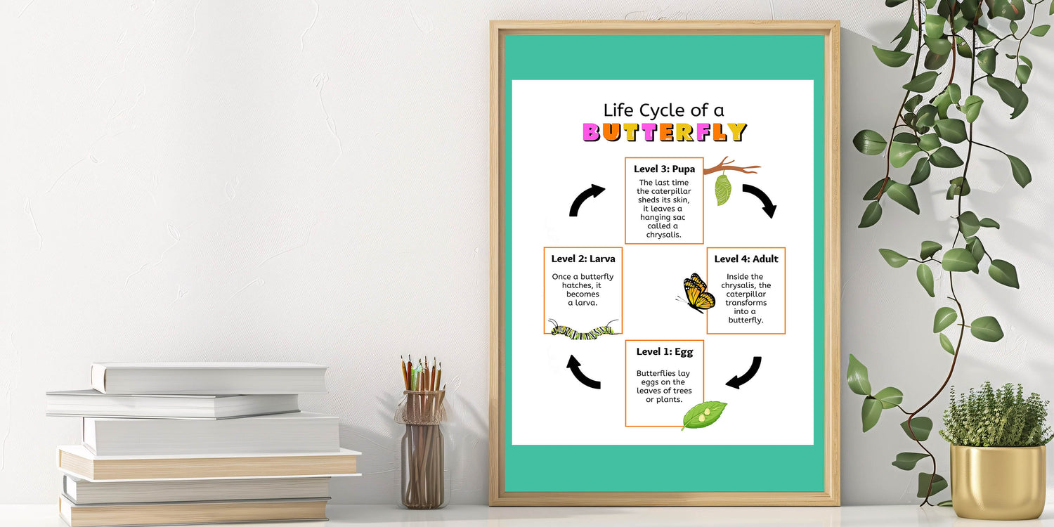 - Informative and interactive Learning Poster for Kids covering the butterfly life cycle.