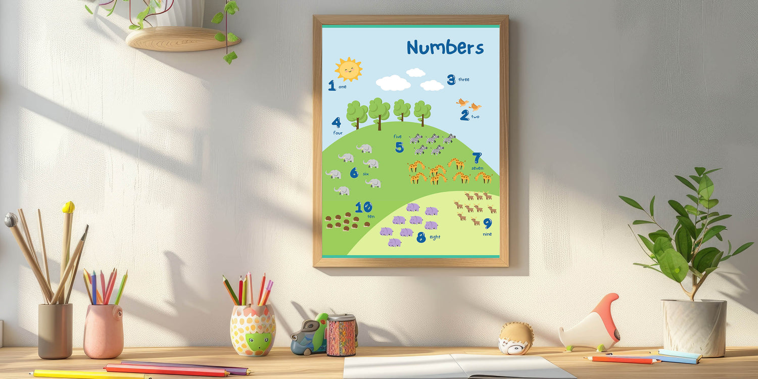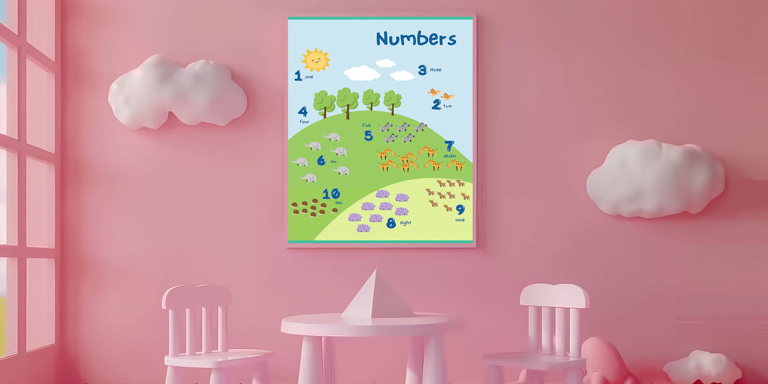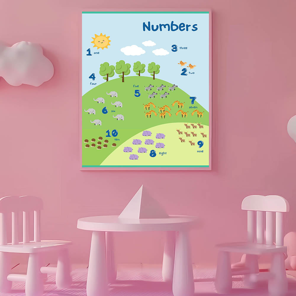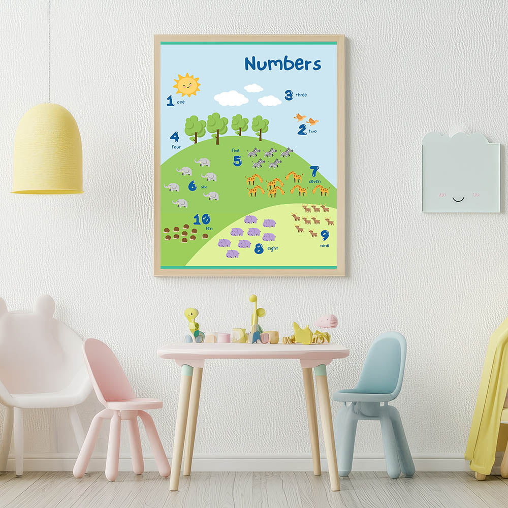 This Classroom Educational Poster is a great way to introduce young learners to counting and number recognition in a fun and interactive way. Whether in a kids' room, nursery, or playroom, this educational canvas print makes learning numbers engaging and exciting.