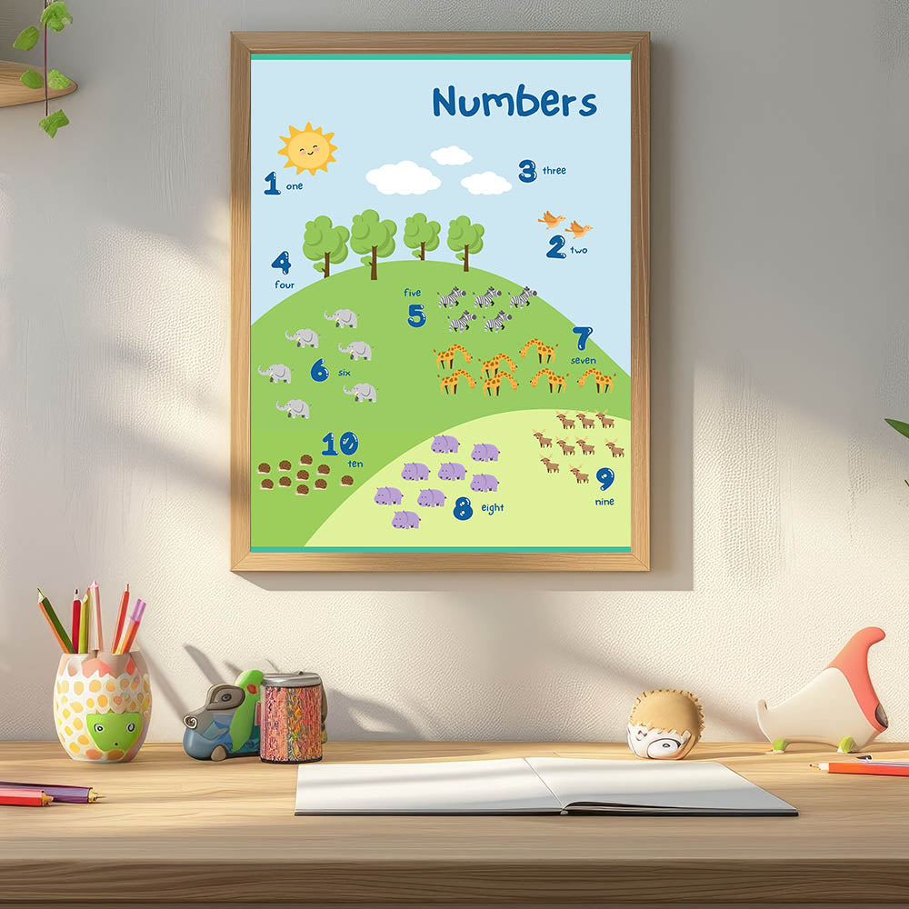 Numbers Kids Educational Wall Art – Counting Animals Poster