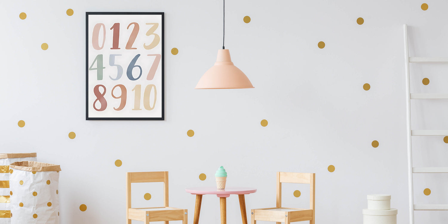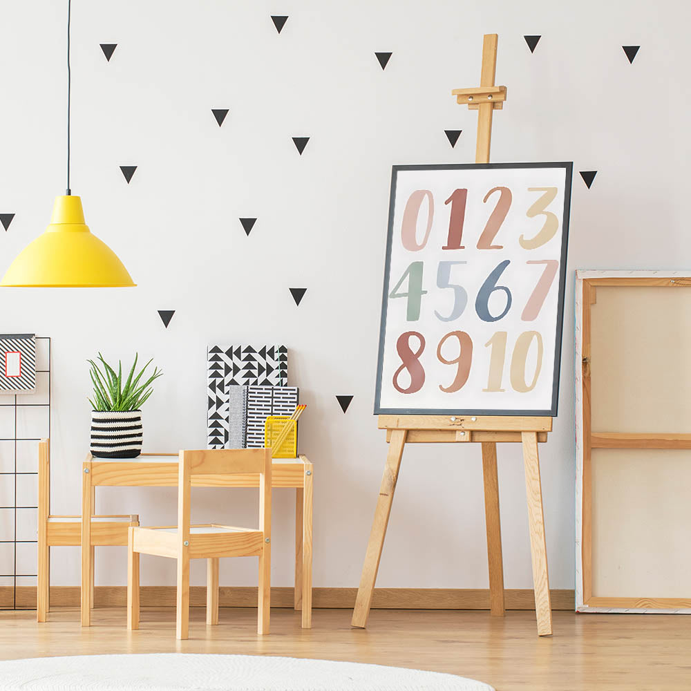 - Educational Art for Kids' Rooms that encourages early number recognition in a simple and elegant format.