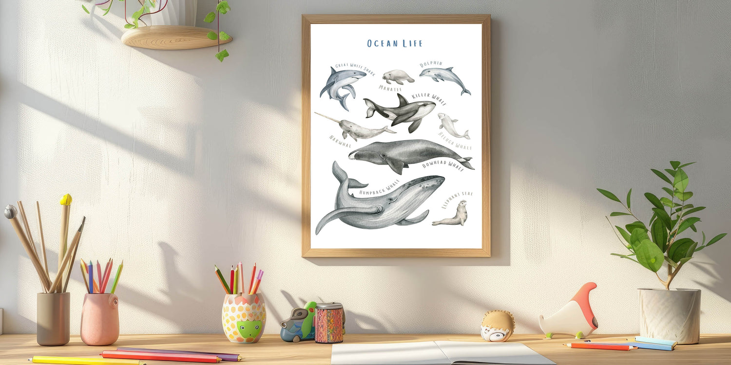 Ocean Life Kids Educational Wall Art - Learning Poster for Classrooms