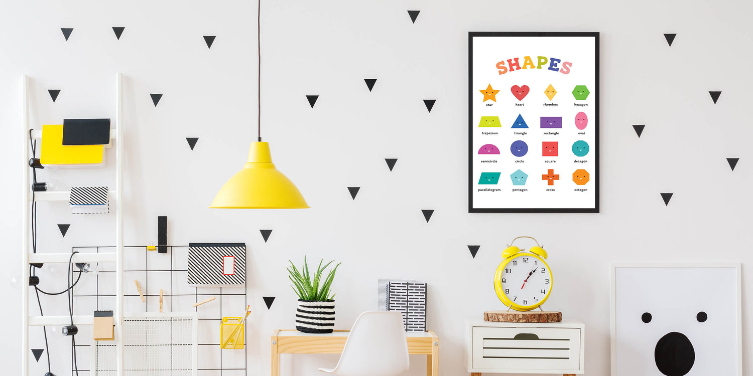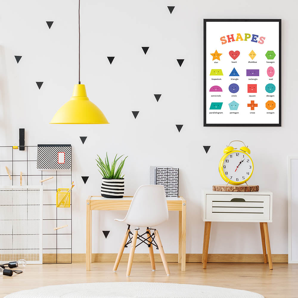 - Educational Art for Kids' Rooms designed to teach children about basic shapes in a fun and engaging way.