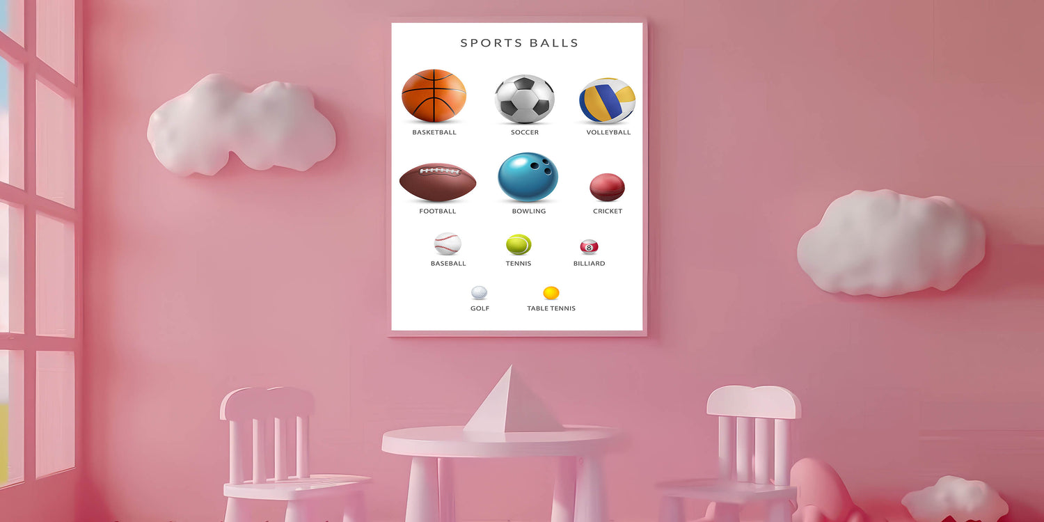Sports Balls Educational Wall Art - Kids' Learning Poster