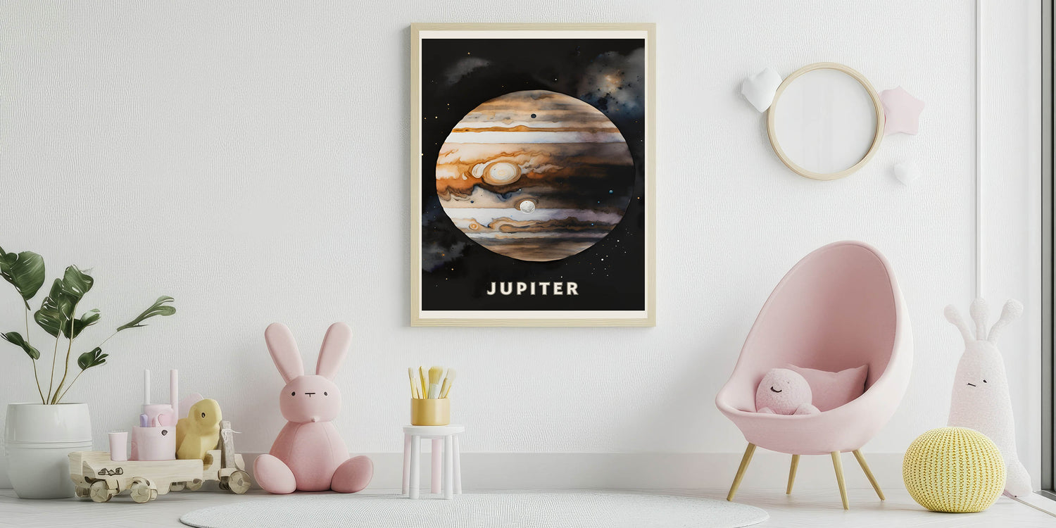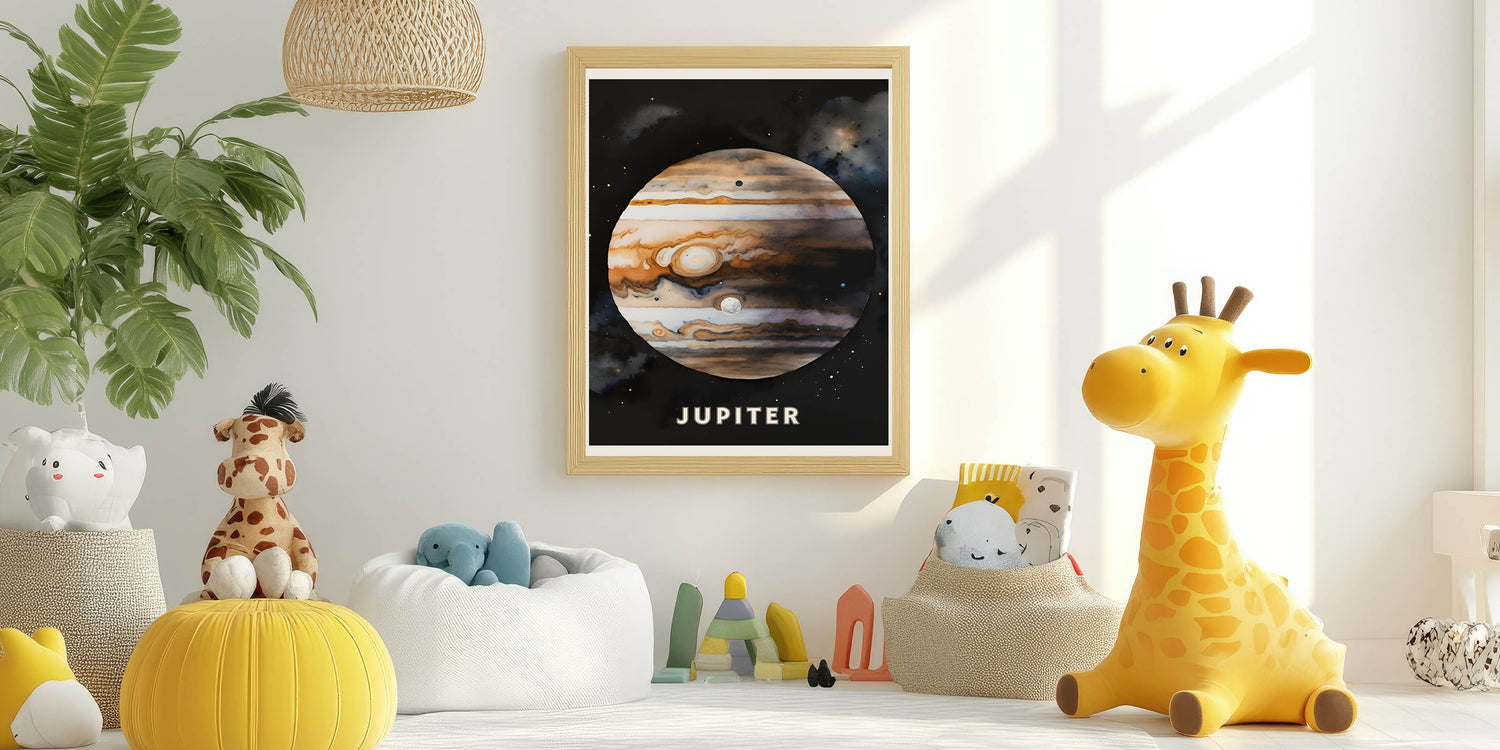 Inspire young astronomers with this STEM Learning Wall Art, featuring a stunning artistic depiction of Jupiter. Perfect for classrooms, kids' rooms, and nurseries, this Children’s Learning Art Print brings the wonders of space into any learning environment. Whether your child is fascinated by planets or you’re looking for unique Educational Art for Kids' Rooms, this print is an excellent choice.