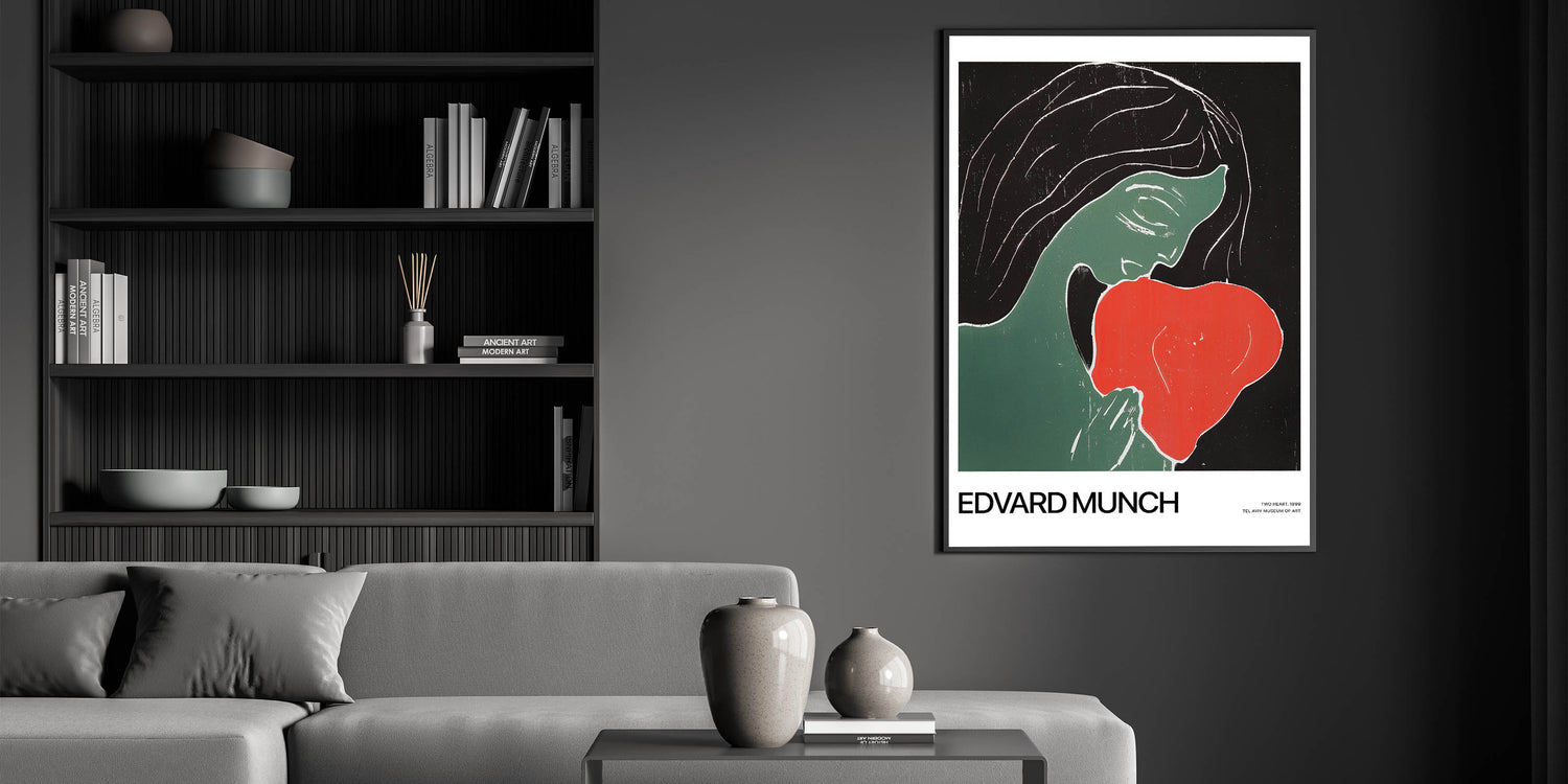 Add a striking touch of modern art to your home with Edvard Munch's powerful artwork "Two Heart." This emotionally charged piece exemplifies the Expressionist masterpiece style for which Munch is celebrated. Ideal for lovers of Edvard Munch canvas works, this reproduction highlights the depth of human emotion through bold contrasts of color and form. It's available in various formats, making it a versatile choice for any modern art decor enthusiast.