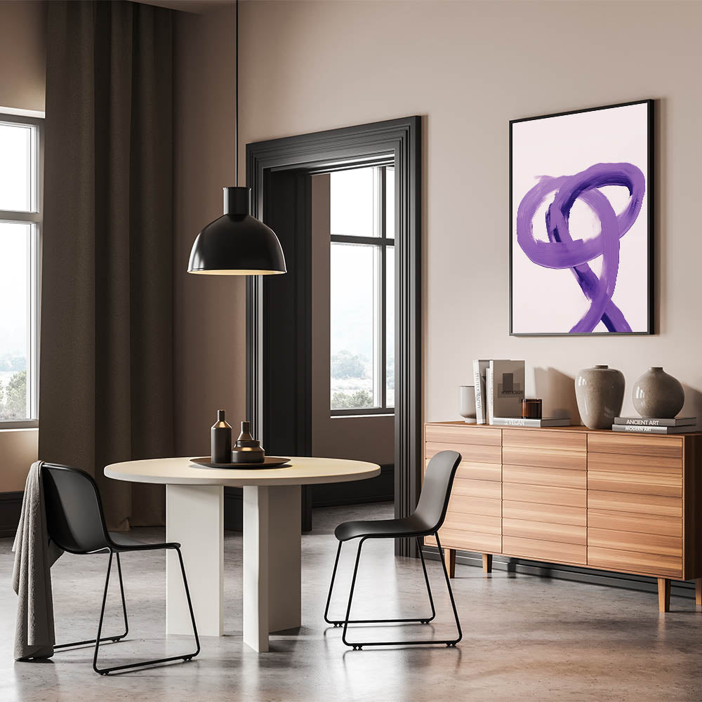 This electric wall art features a striking purple brushstroke, creating a bold and dynamic visual impact. The fluid motion of the brushwork against the soft background adds a sense of energy and movement, making it an eye-catching electric-themed piece. Perfect for contemporary spaces, this artwork brings a touch of modern elegance to any room.