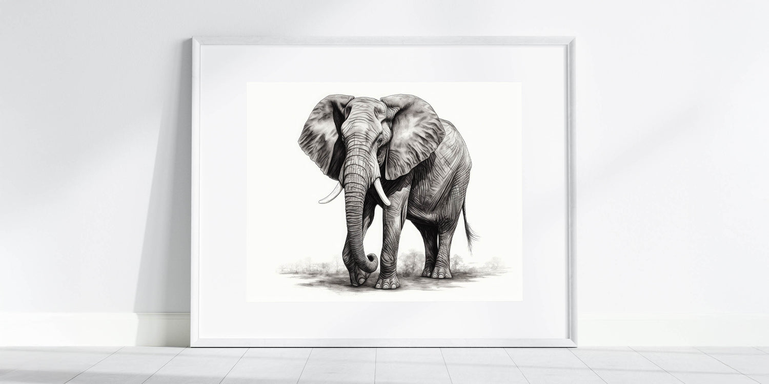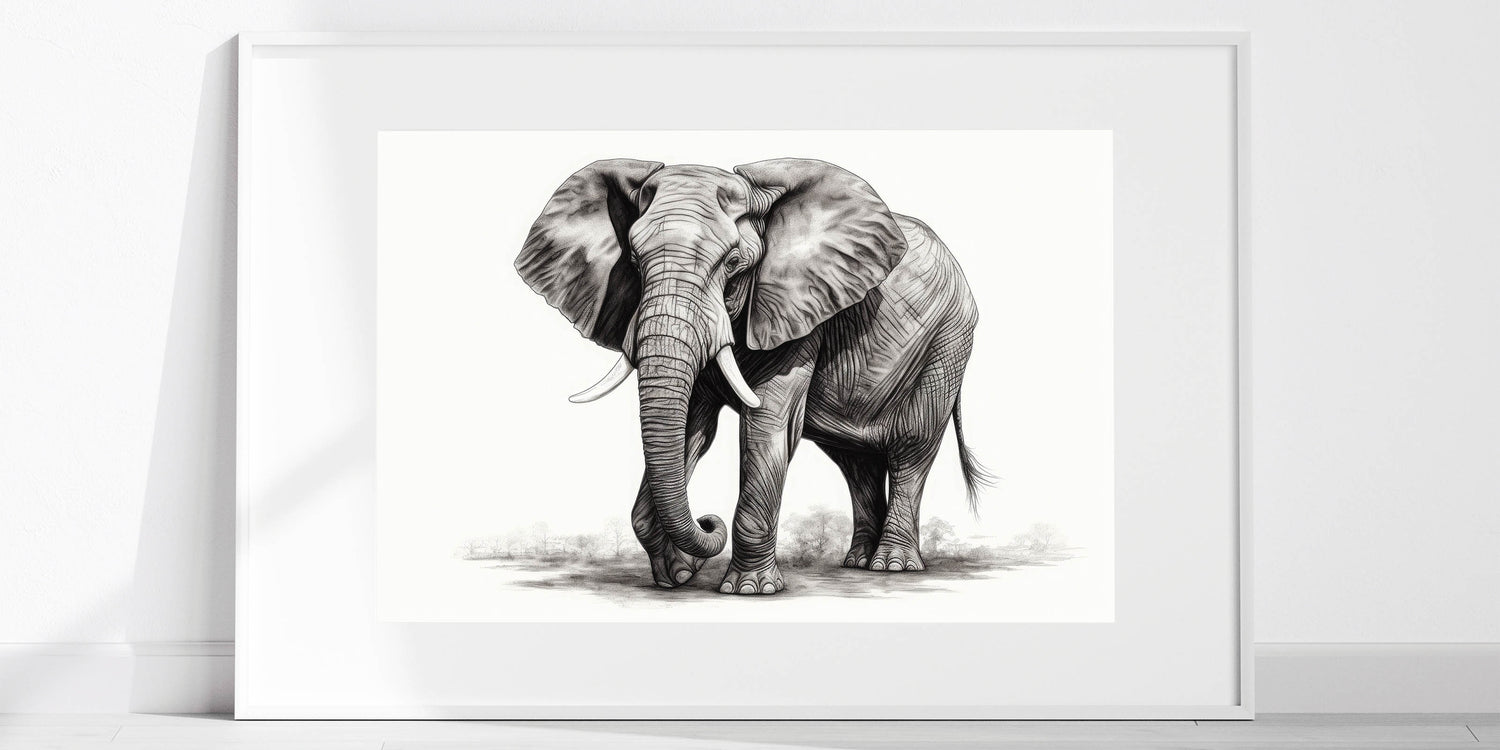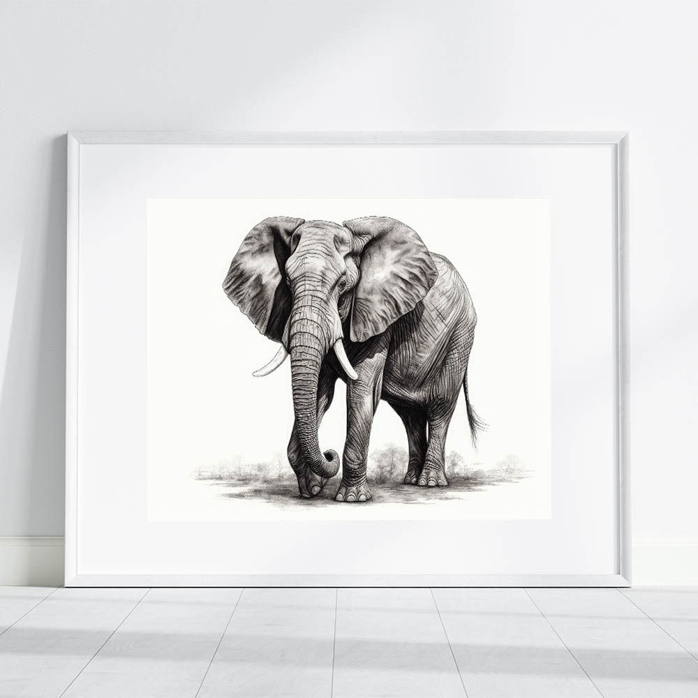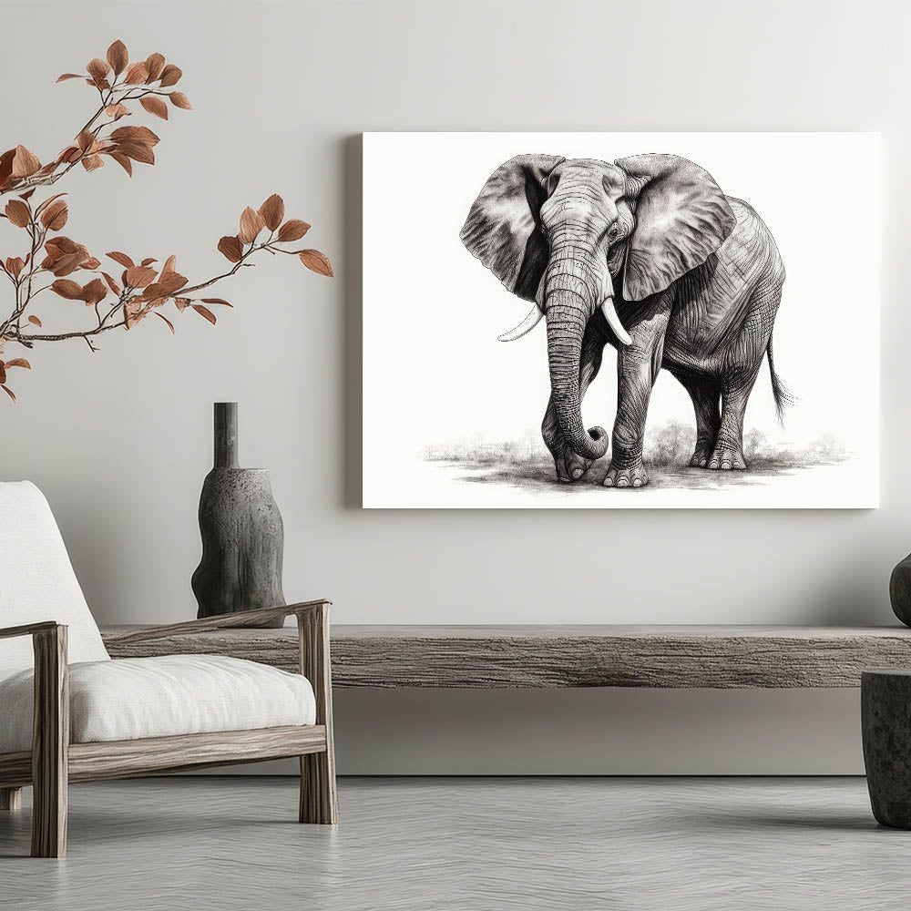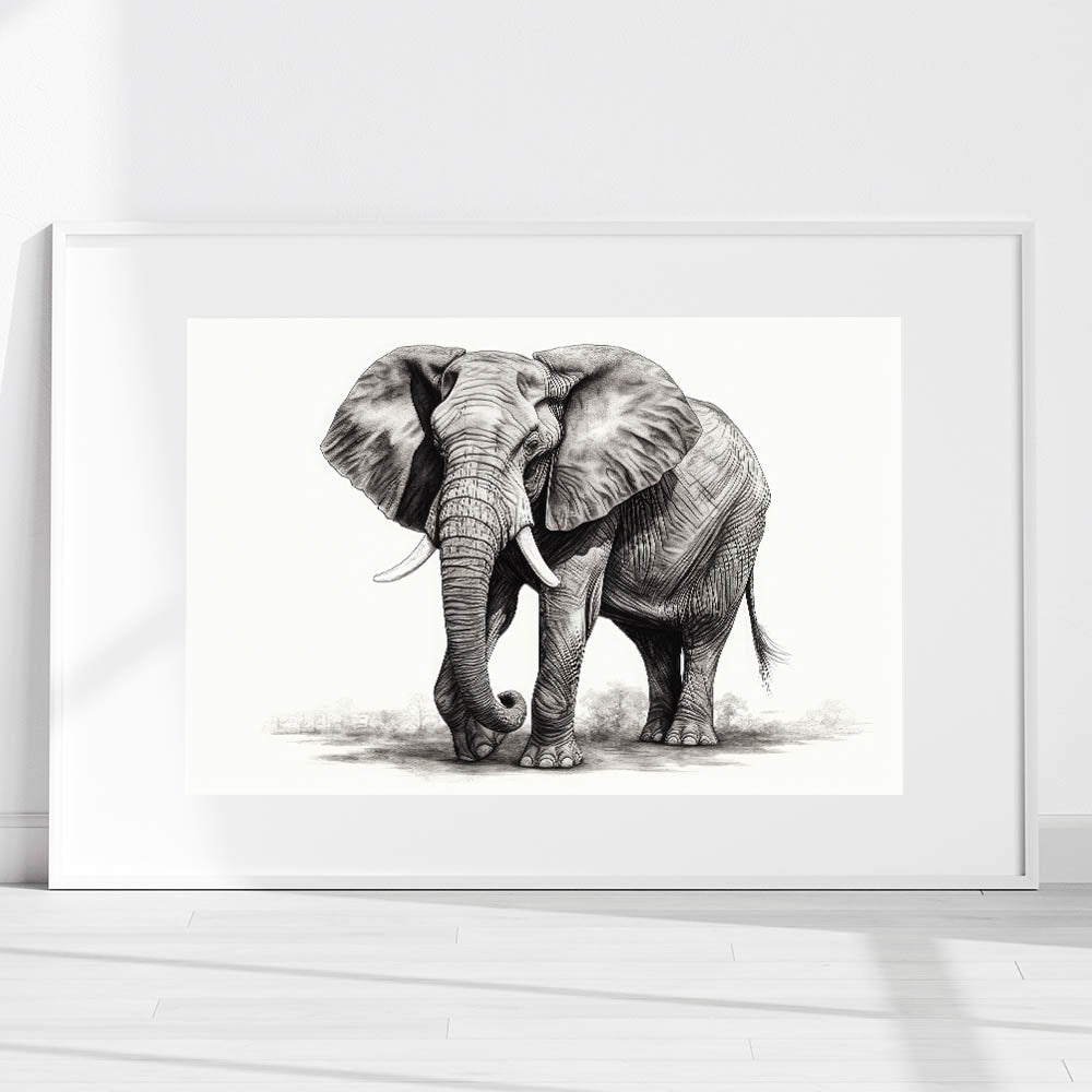 Bring the elegance of monochrome artistry into your home with this Detailed Elephant Sketch Art. This stunning black and white artwork captures the majestic presence of an elephant through intricate line work and shading, highlighting the beauty and strength of these magnificent creatures. The detailed textures and refined lines make this piece a timeless addition to any room, perfect for those who appreciate sophisticated and minimalist decor.