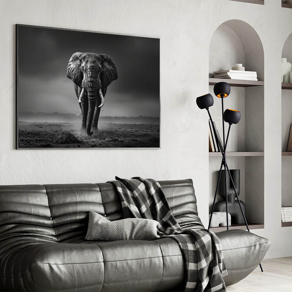 Powerful Elephant in the Storm - Dramatic Black and White Canvas Art