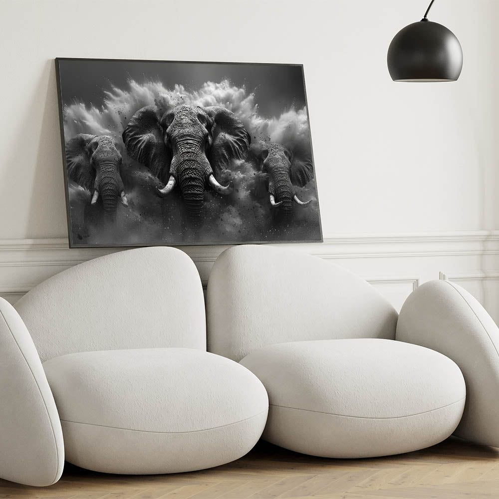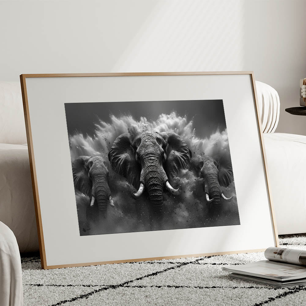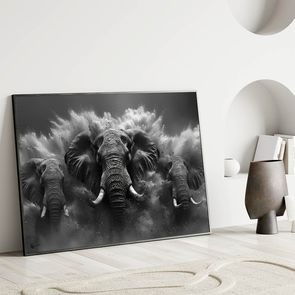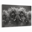 Thunderous Elephant Charge - Dramatic Black and White Canvas Art