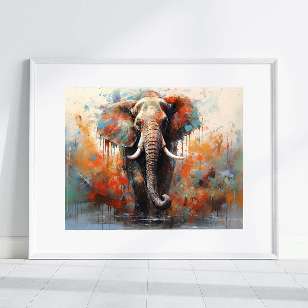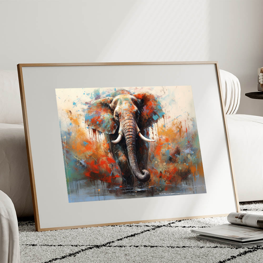 Infuse your space with energy and creativity through this Vibrant Elephant Art. This dynamic piece showcases a powerful elephant set against an abstract backdrop bursting with color. The striking combination of oranges, blues, and reds creates a mesmerizing visual impact, making this artwork a perfect choice for those looking to add a bold statement piece to their decor. The blend of abstract and wildlife art results in a unique composition that captures the spirit and majesty of the elephant in an entirely new light.
