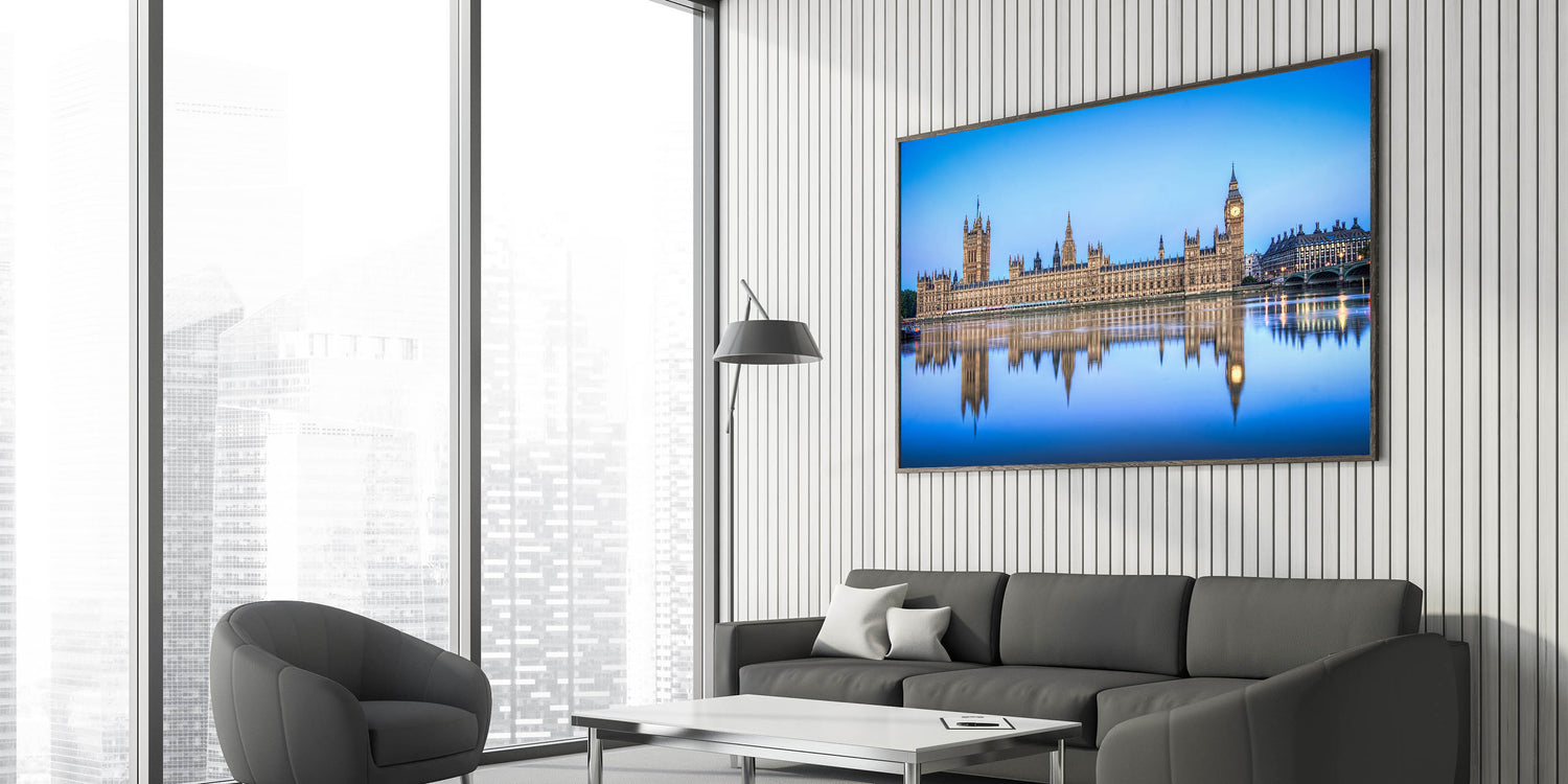 - Scenic River Thames artwork: Available in stretched canvas, framed canvas, and acrylic glass