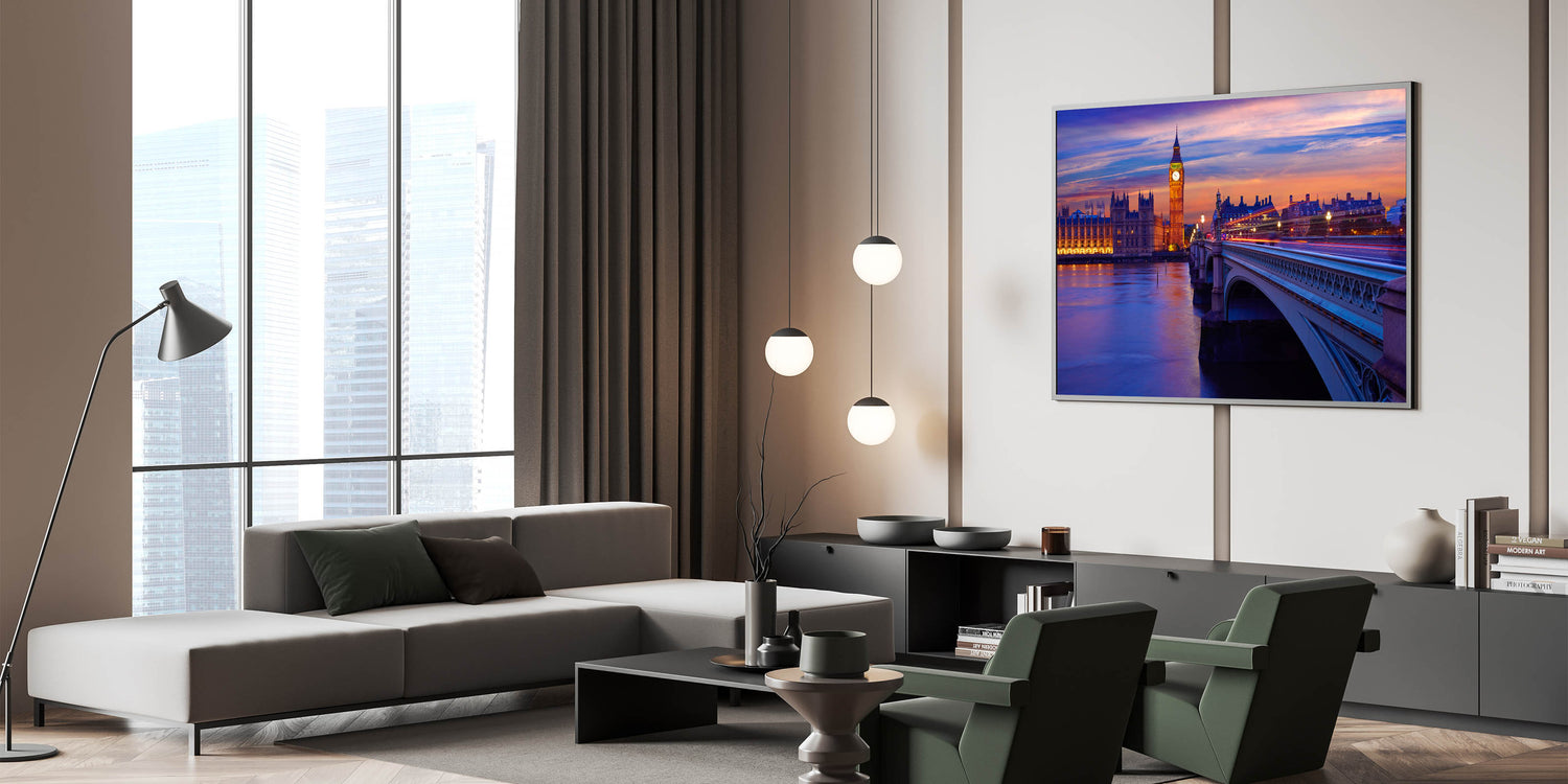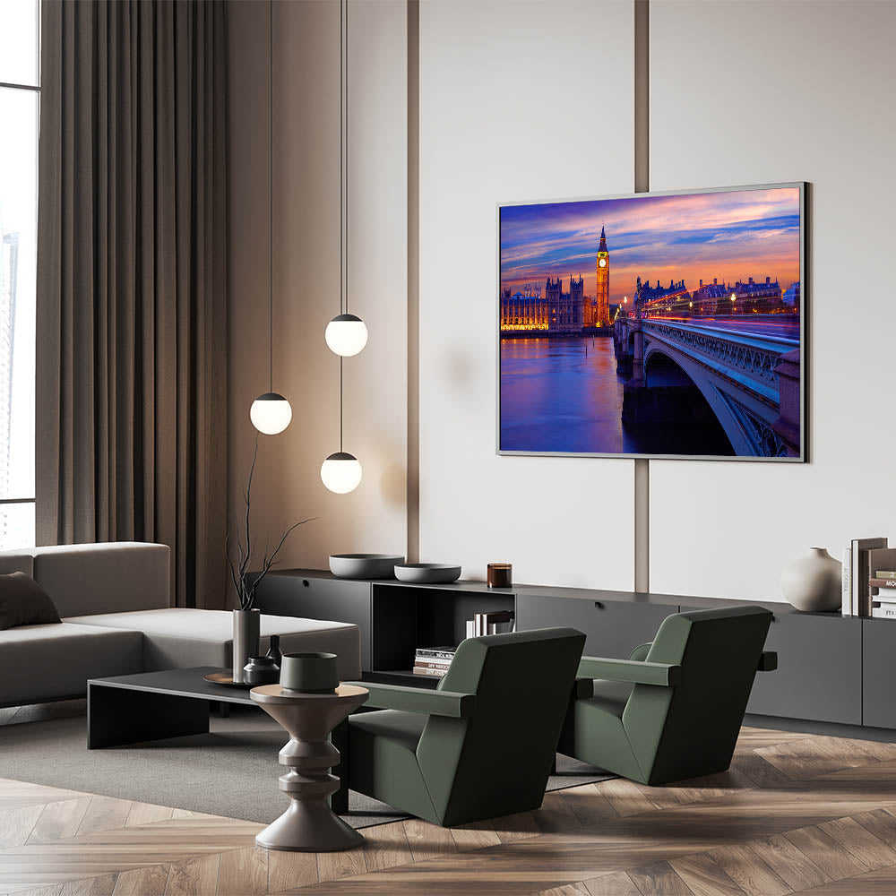- Scenic River Thames artwork: Available in stretched canvas, framed canvas, and acrylic glass