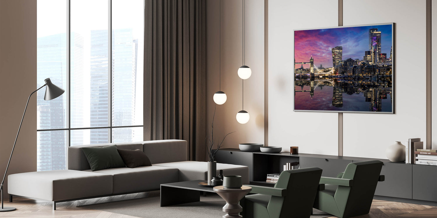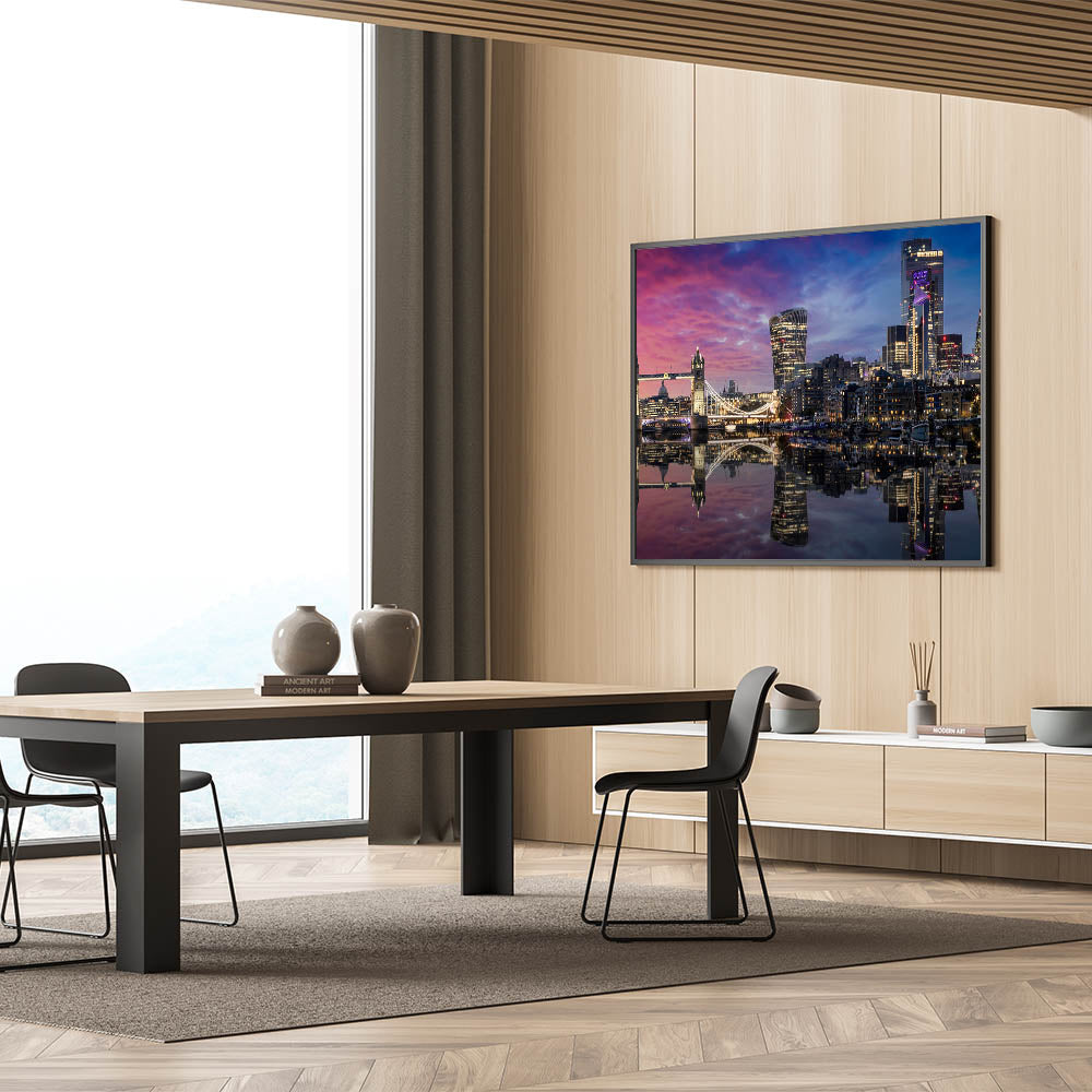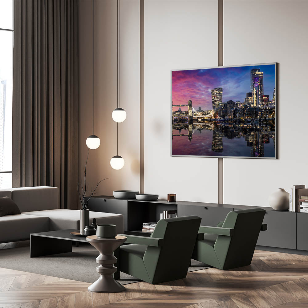 - Scenic River Thames artwork: Available in stretched canvas, framed canvas, and acrylic glass