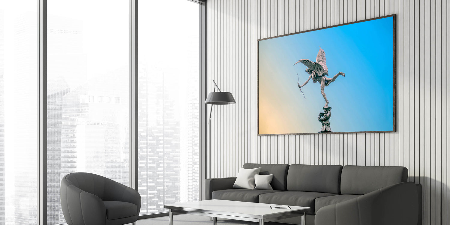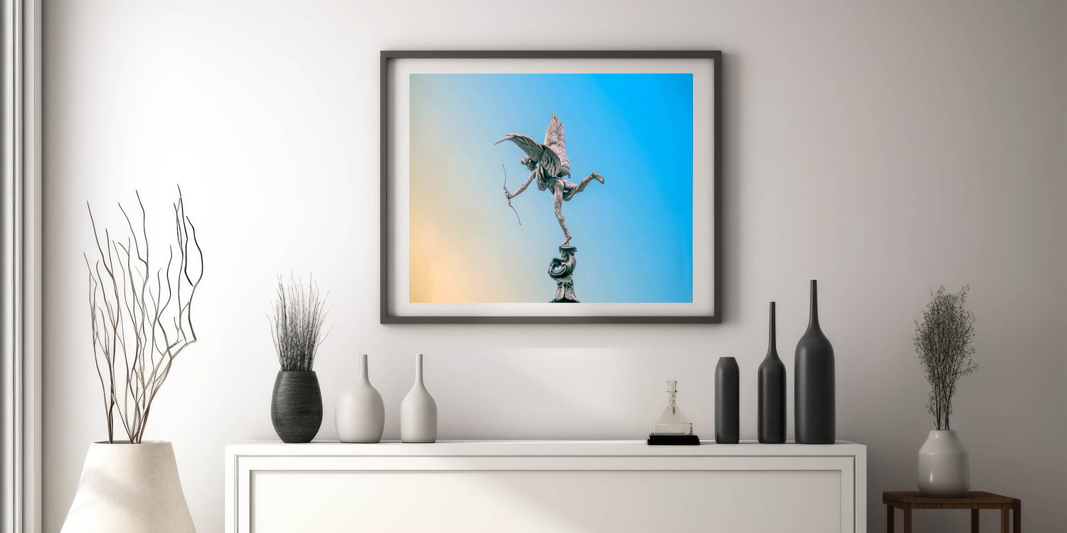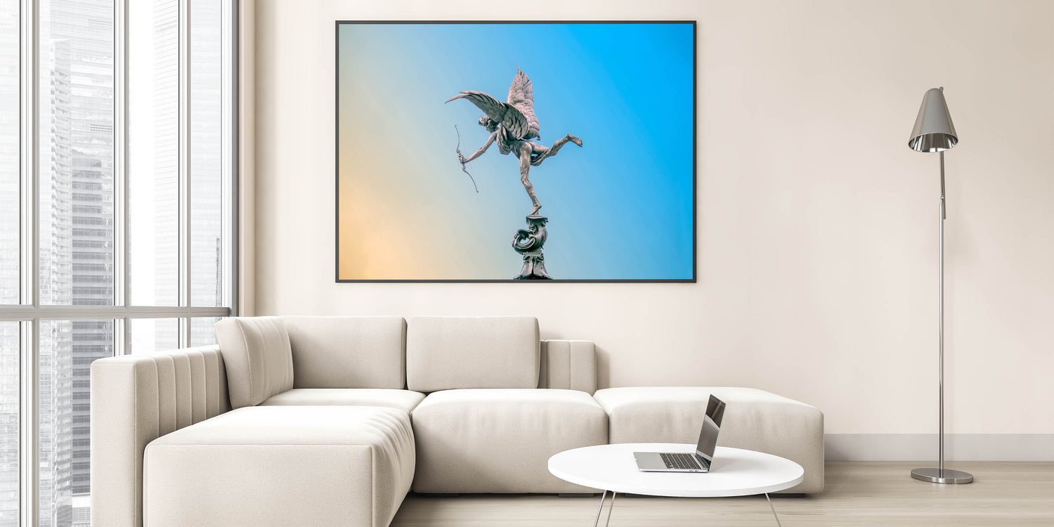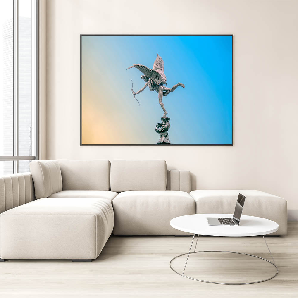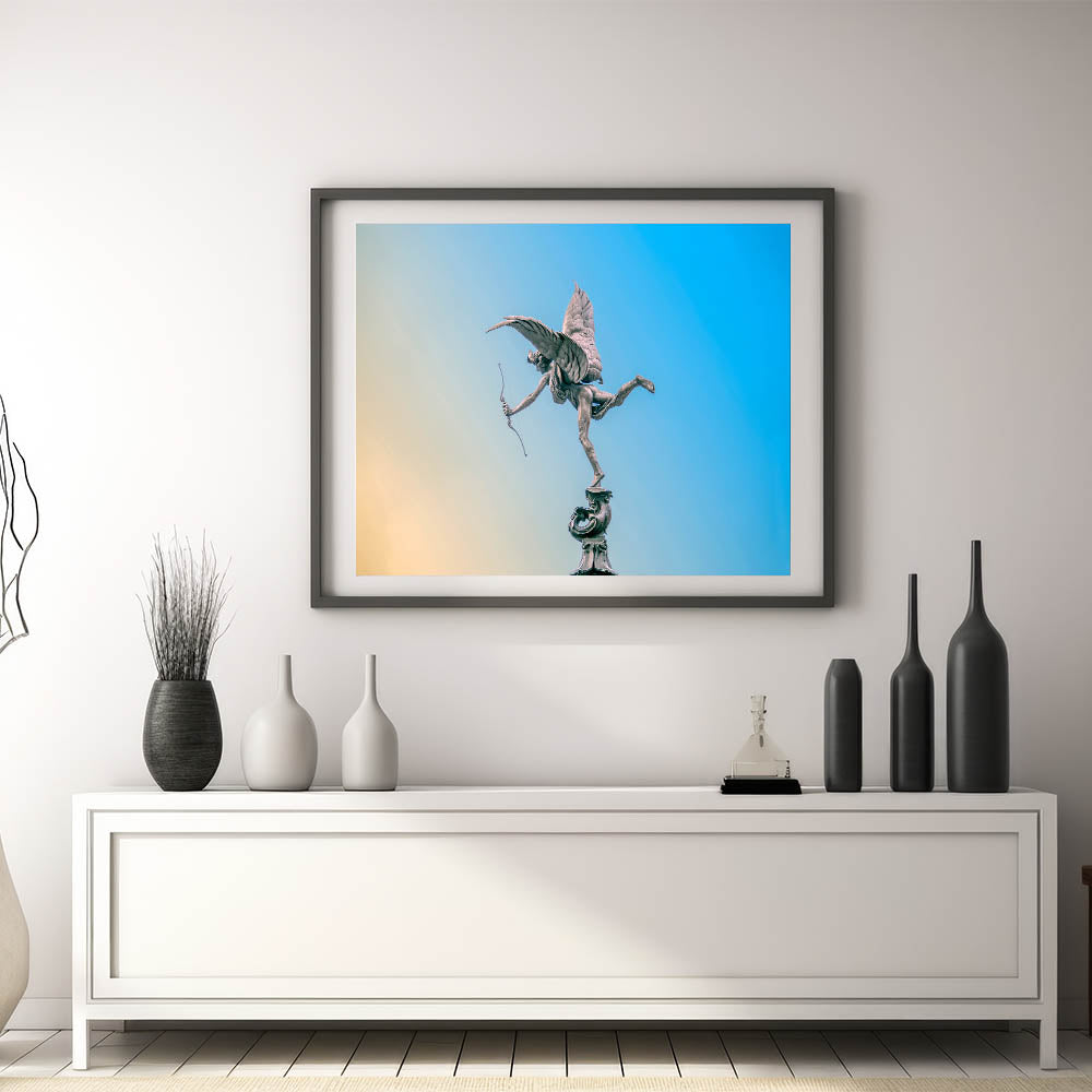 Piccadilly Wall Art - Eros Statue with Blue and Yellow Sky Background