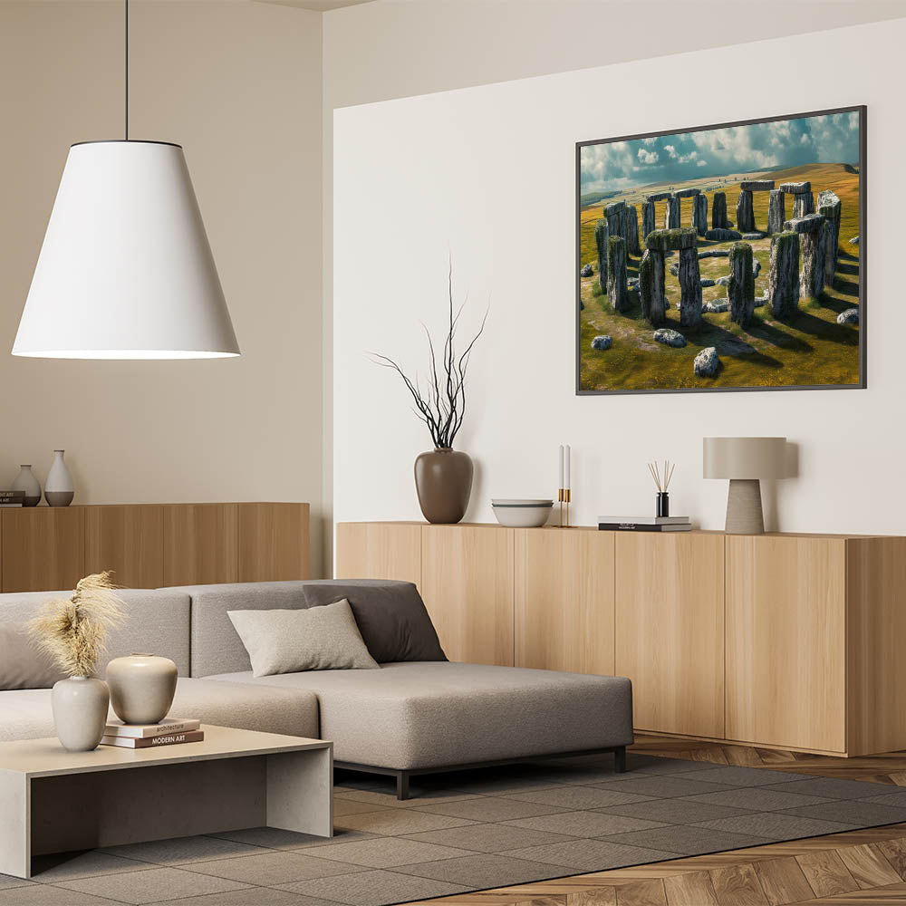 Bring the beauty of the Stonehenge Landscape into your home with this one-of-a-kind Historic Site Wall Art. Perfect for adding depth, history, and natural beauty to any setting.