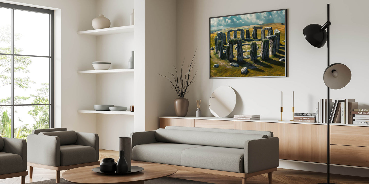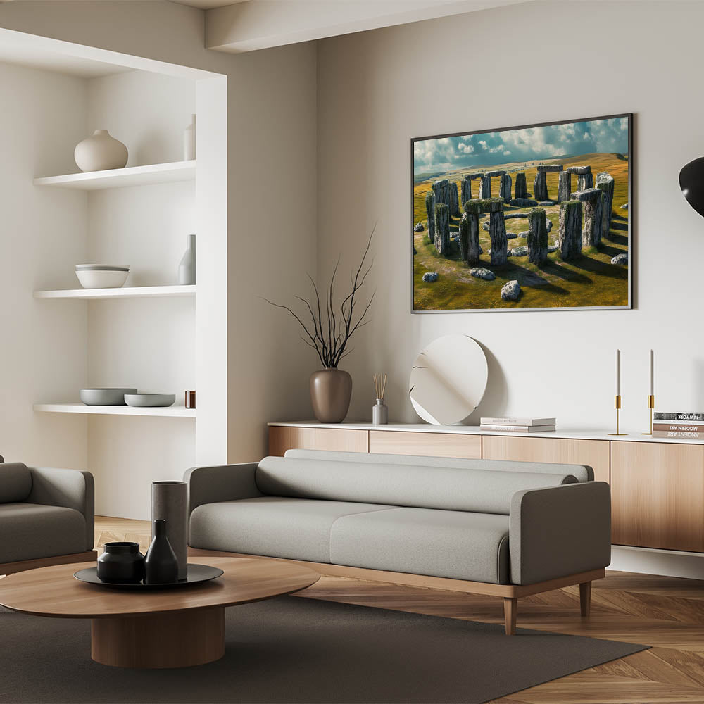 Scenic Stonehenge Artwork - Stonehenge Prints with Lush Landscape