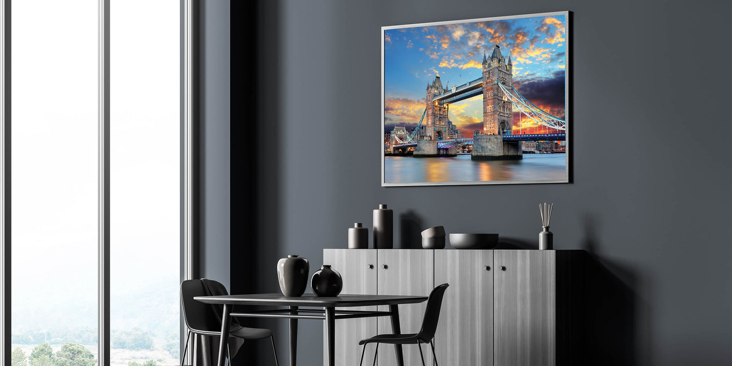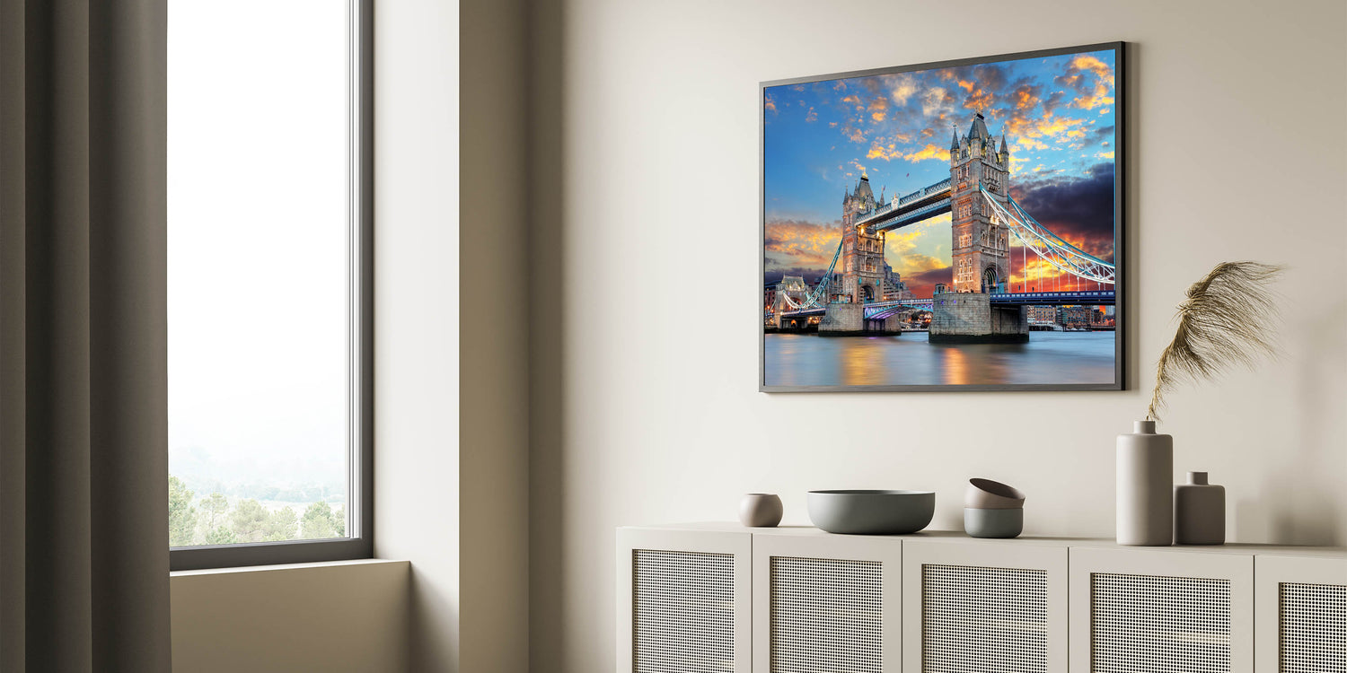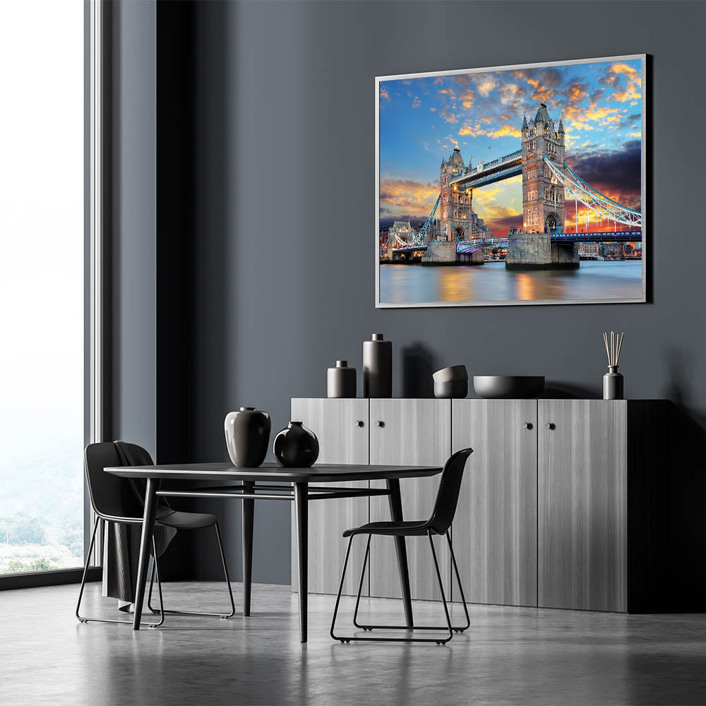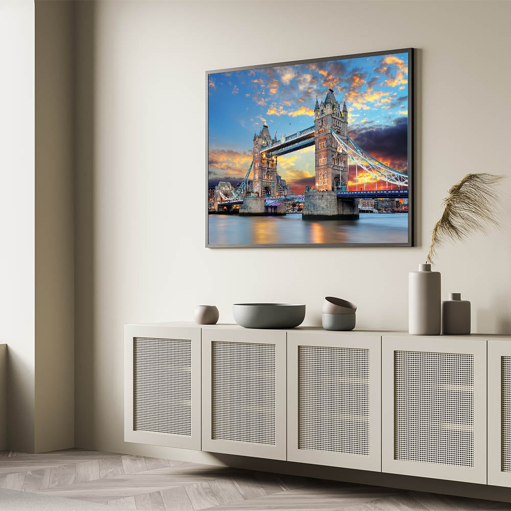 • Scenic River Thames artwork: Available in stretched canvas, framed canvas, and acrylic glass
