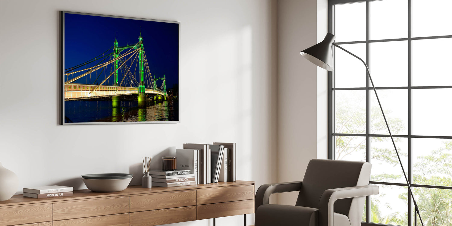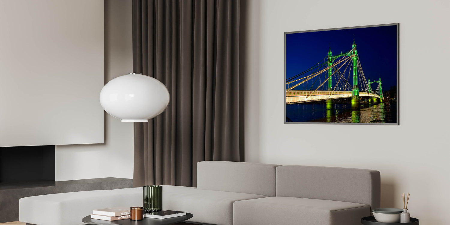 • Scenic River Thames artwork: Available in various framing options, including stretched canvas, framed canvas, and acrylic glass